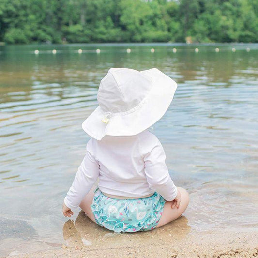 Chapéu com Proteção Solar 50+ com Aba Larga White Turtle Floral