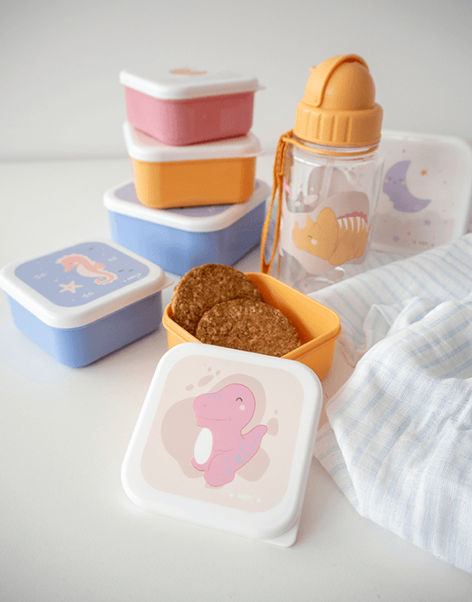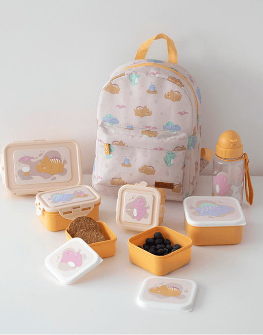 Conjunto de 3 Caixas Lancheiras - Happy Dinos Mostarda