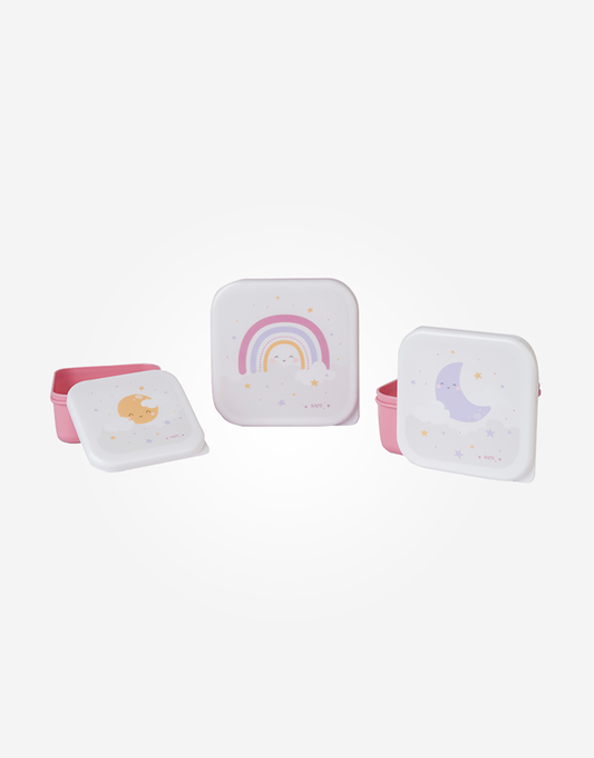 Conjunto de 3 Caixas Lancheiras - Rainbow Rosa