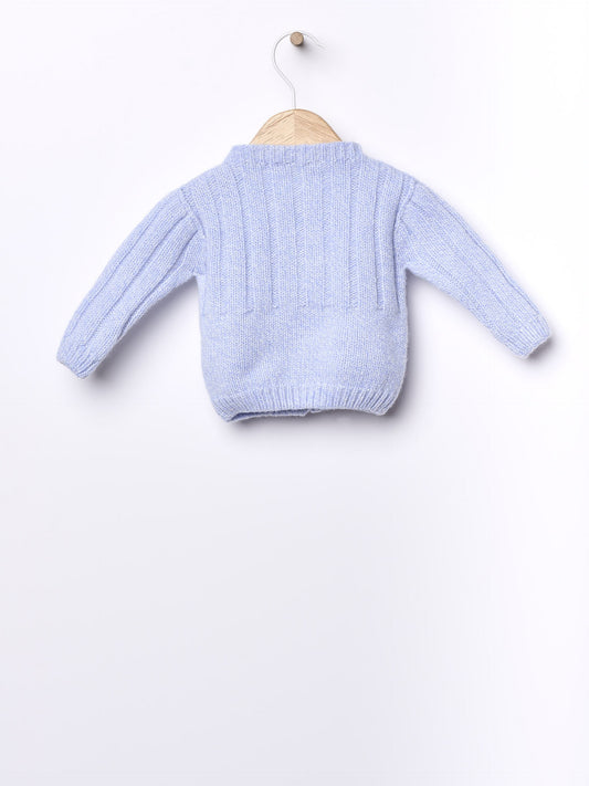 Wedoble - BUNNY AND FRIENDS Casaco Tricotado em Lã Merino Azul Mouliné