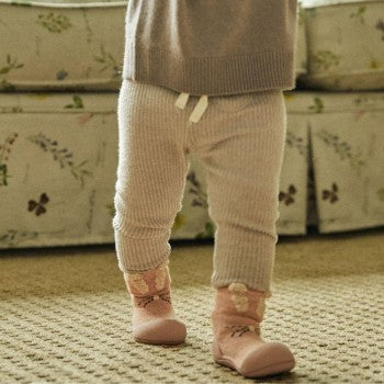 Fabricado com tecido de algodão sustentável e ecologicamente seguro para os pés do seu pequeno.