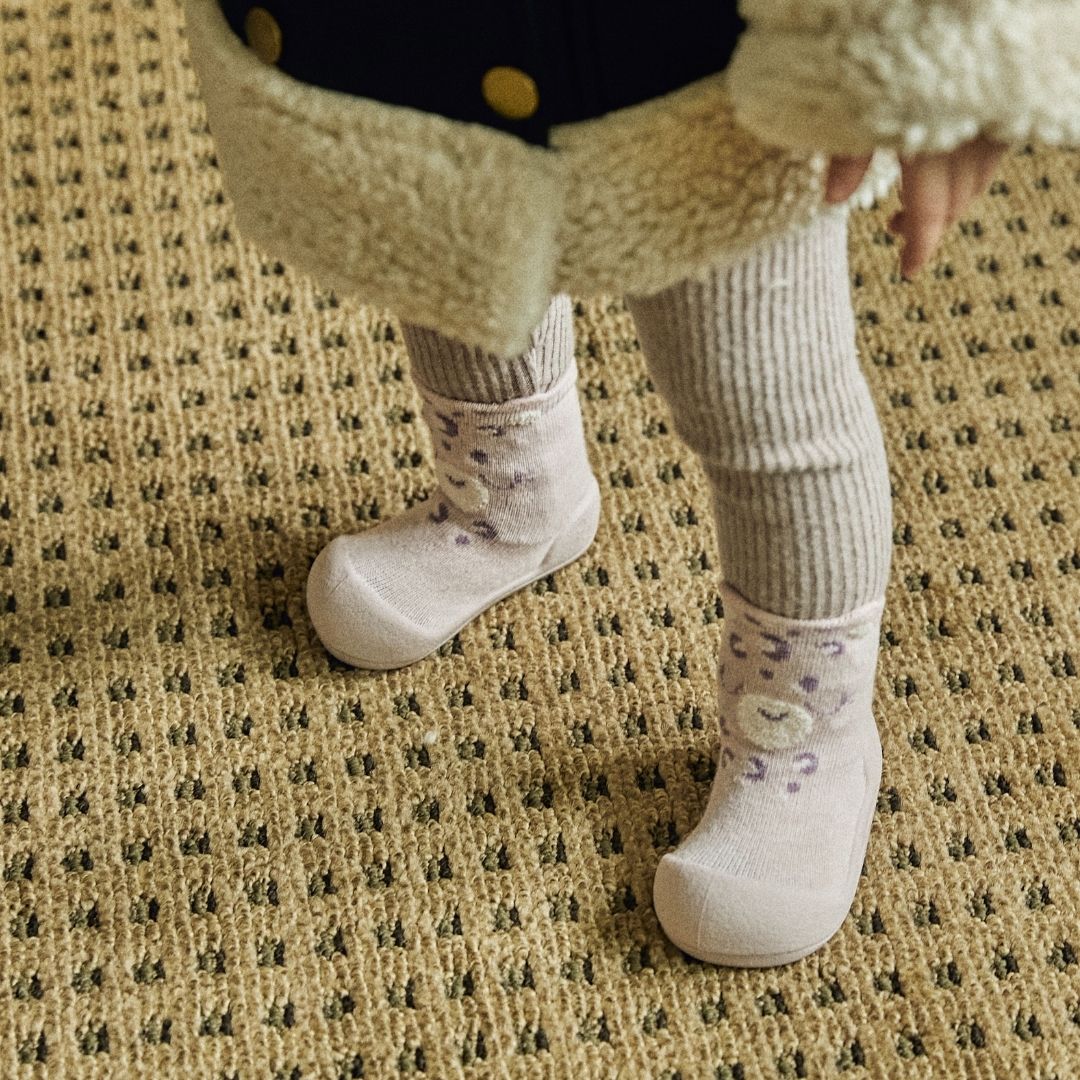 Feito com tecido de algodão sustentável e ecologicamente seguro para os pés do seu pequeno.