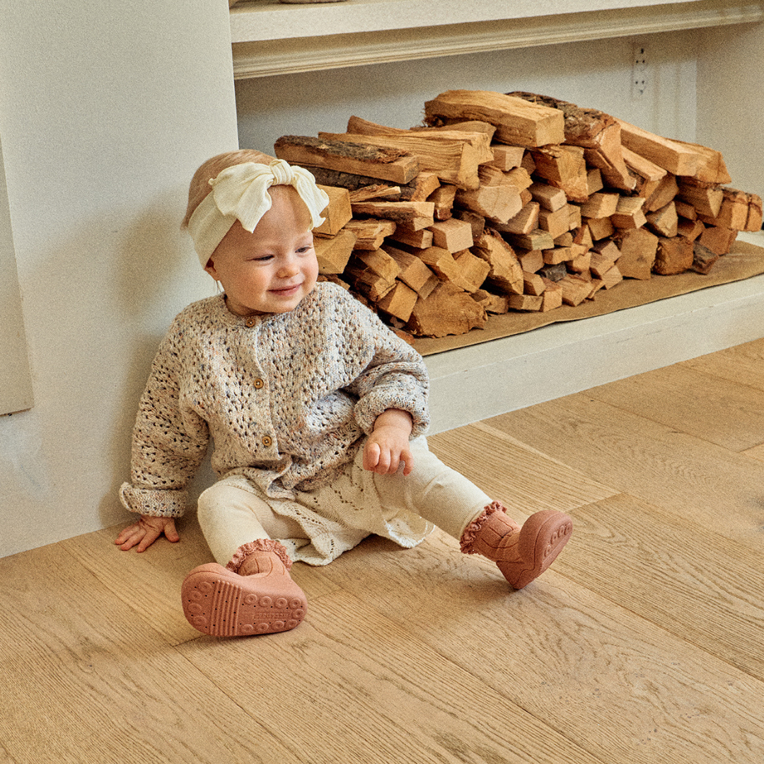 TECIDO DE ALGODÃO COM CERTIFICADO OEKO TEX STANDARD Feito de algodão sustentável e ambientalmente seguro para os pés do seu bebé.