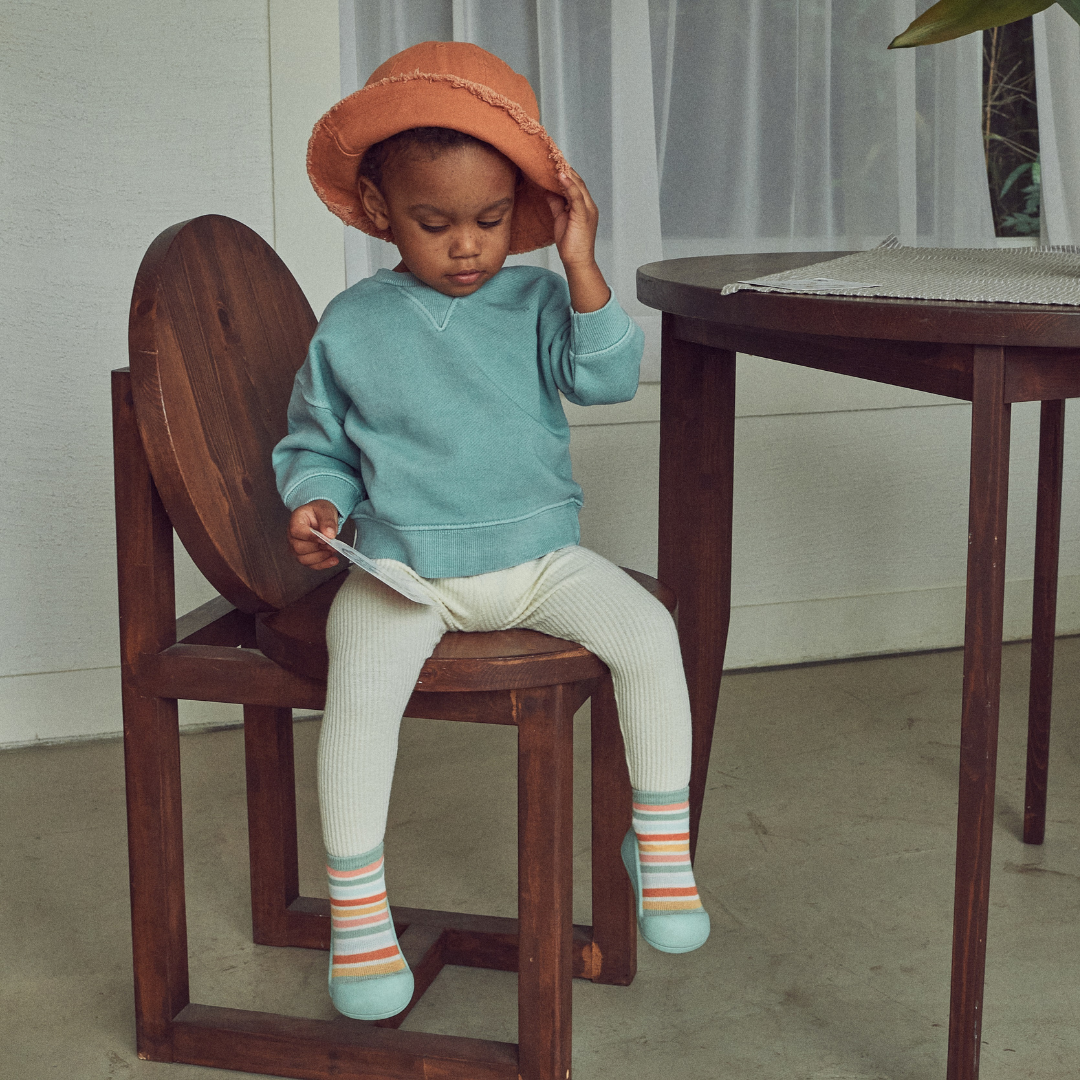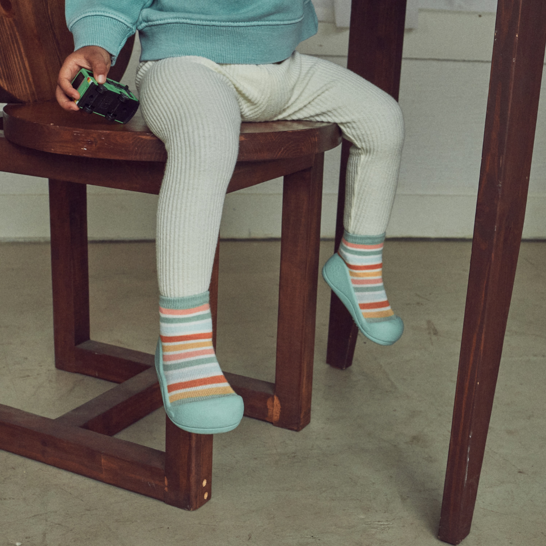 Confeccionado com tecido de algodão sustentável e ecologicamente seguro para os pés do seu pequeno.