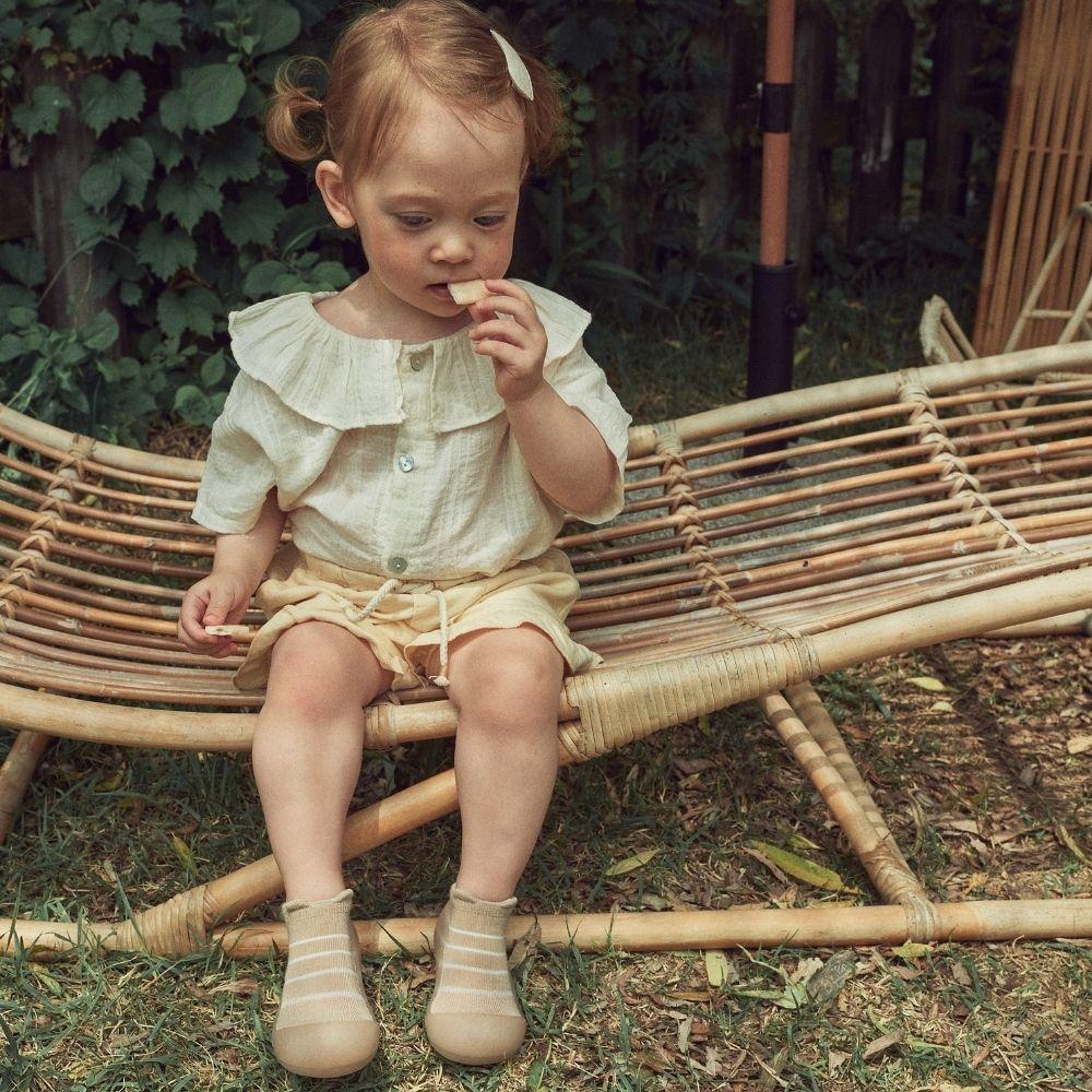 Summer Bear, um modelo muito cool, com tiras de ventilação, em tecido de bambu, e meia na altura do tornozelo. Um modelo ideal para o seu bebé andar com total liberdade de movimentos onde quer que os seus pezinhos o levem. A coleção é composta por 3 modelos: Summer Bear Pink, Summer Bear Blue, Summer Bear Beige. Modelo com TECIDO DE BAMBU!