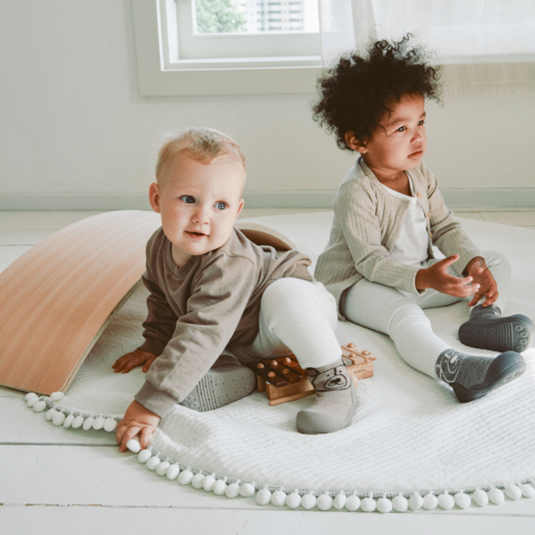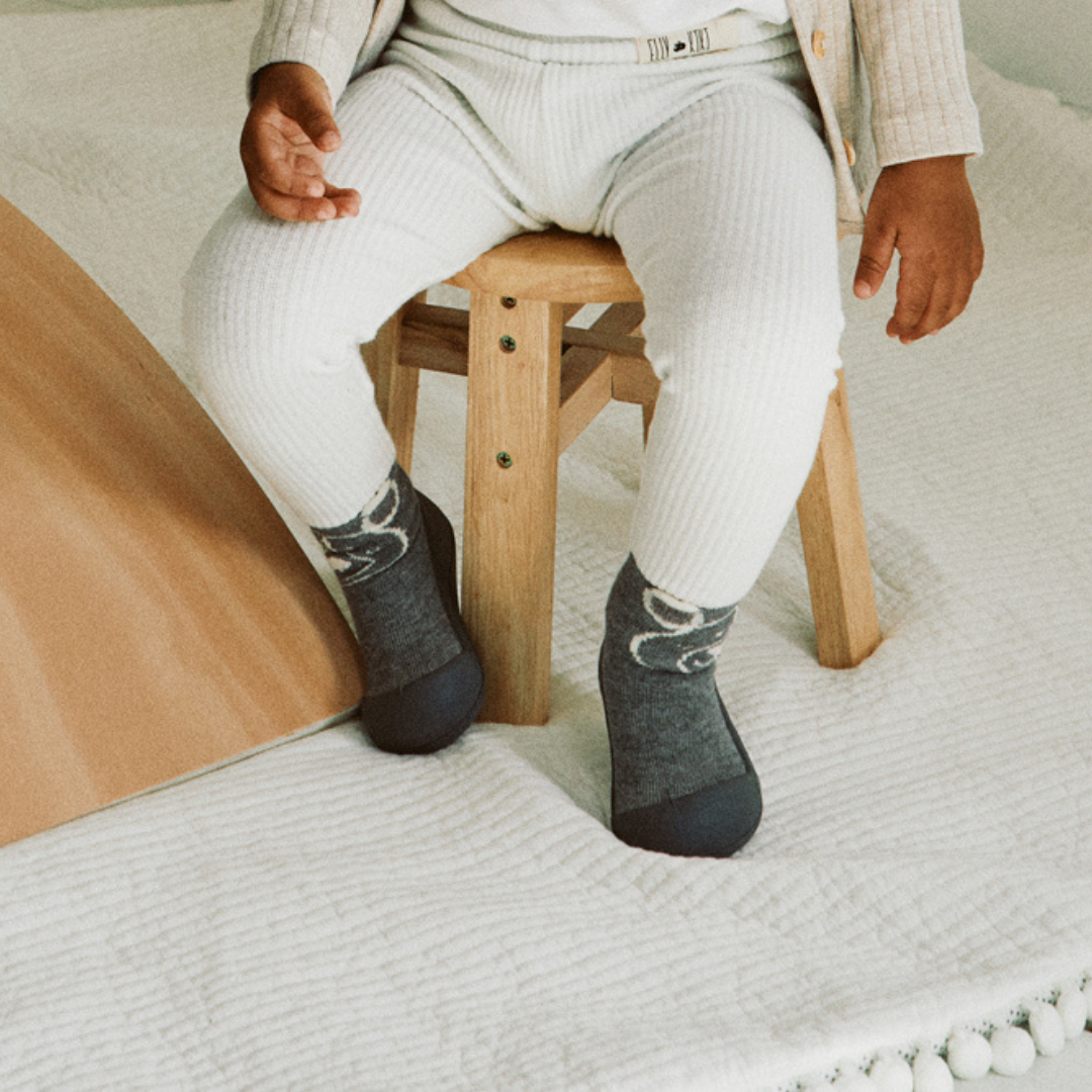 Feito com tecido de algodão sustentável e ecologicamente seguro para os pés do seu pequeno.