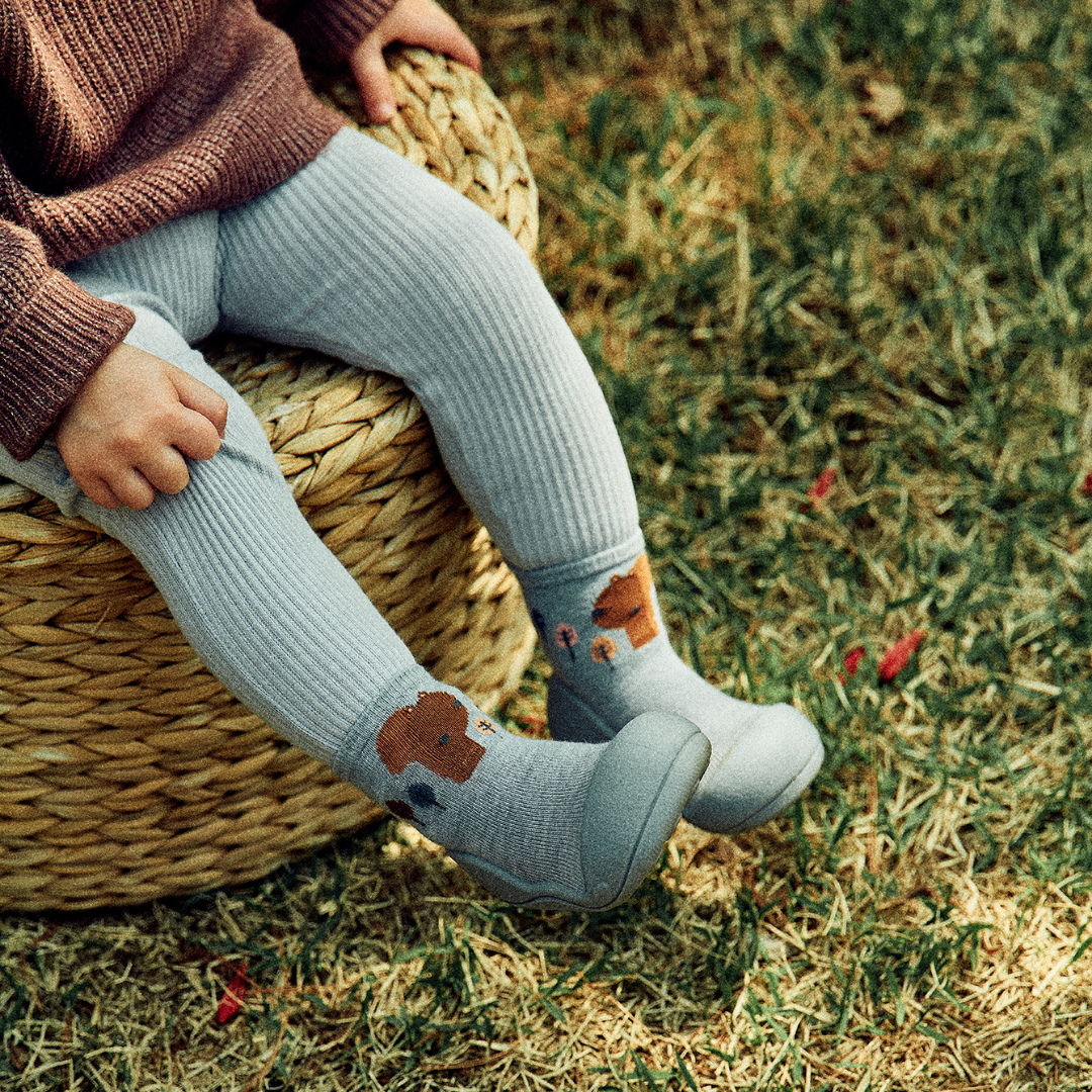 TECIDO DE ALGODÃO COM CERTIFICADO OEKO TEX STANDARD Feito de algodão sustentável e ambientalmente seguro para os pés do seu bebé.