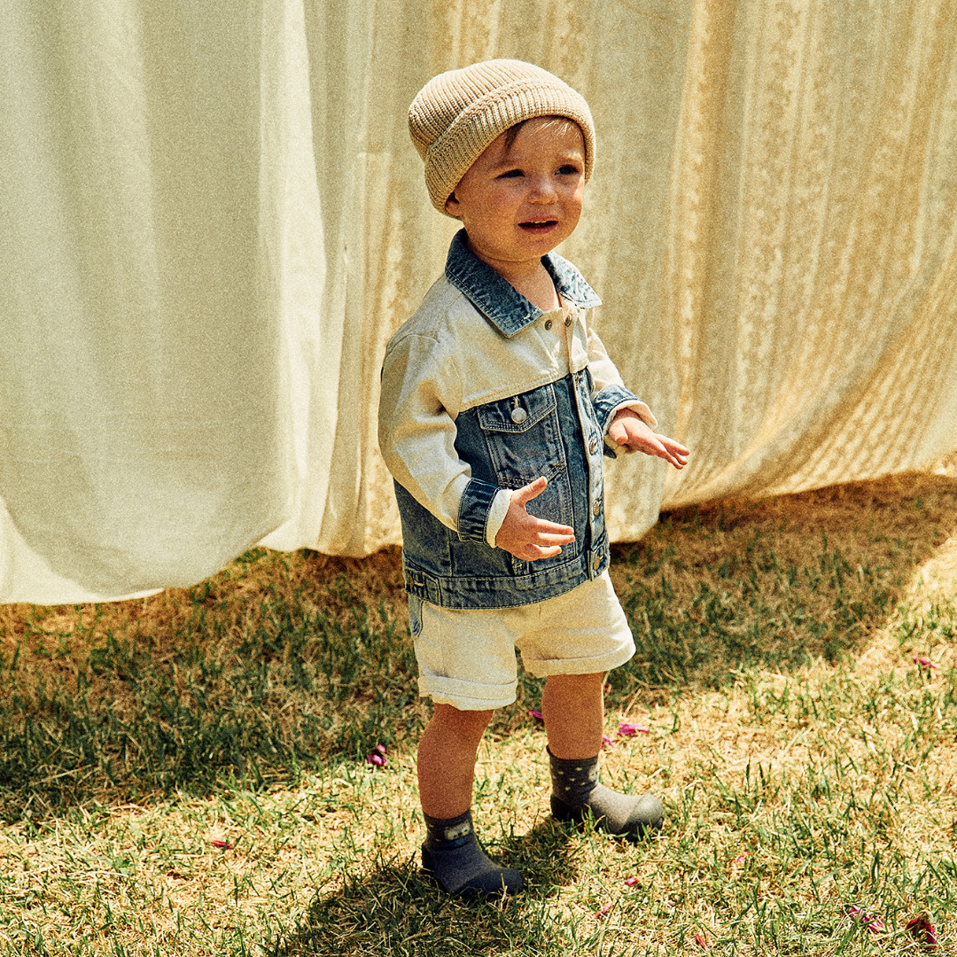 TECIDO DE ALGODÃO COM CERTIFICADO OEKO TEX STANDARD Feito de algodão sustentável e ambientalmente seguro para os pés do seu bebê.