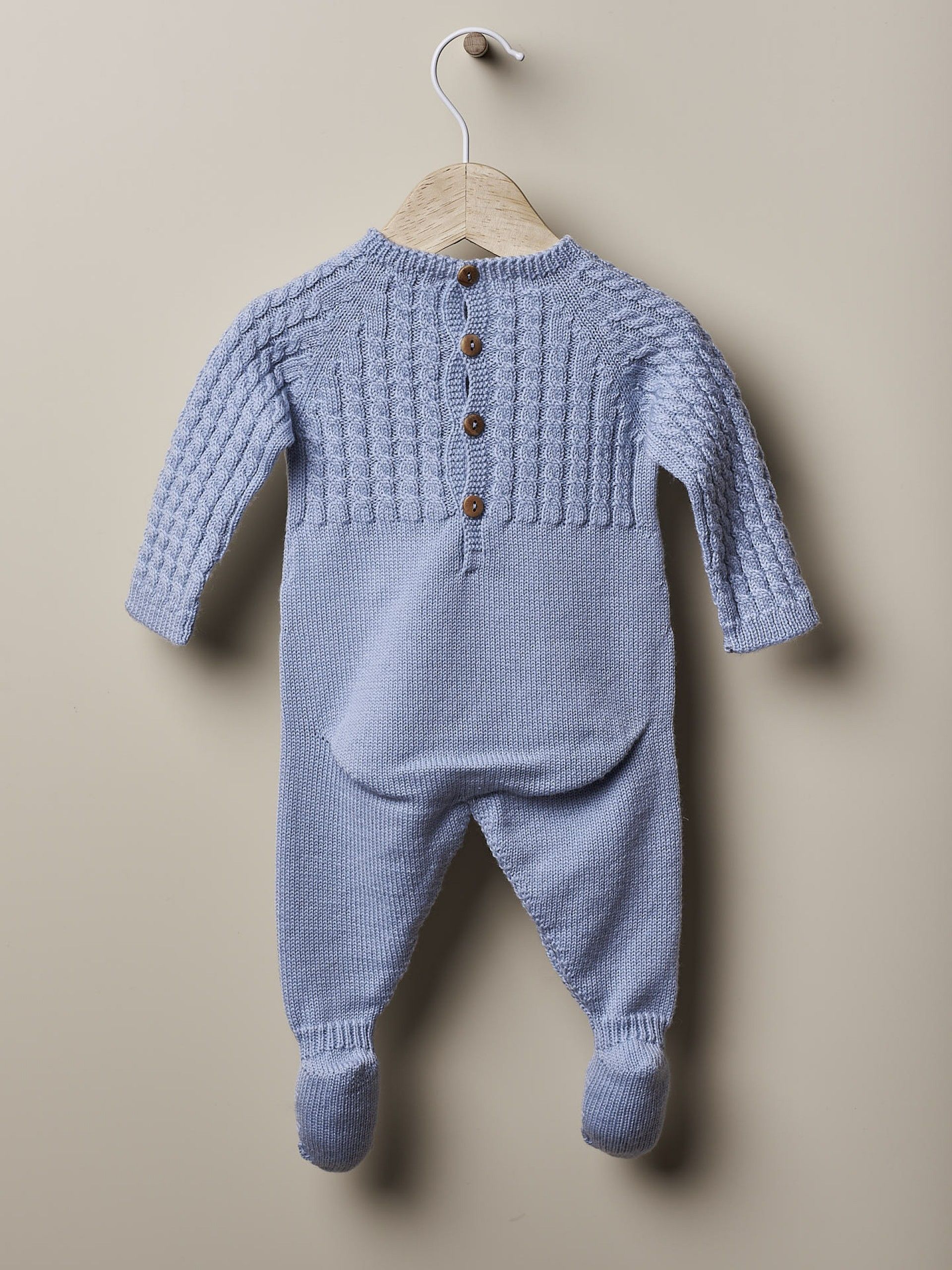 Babygrow com efeito trança tricotado em lã - Azul Bebé
