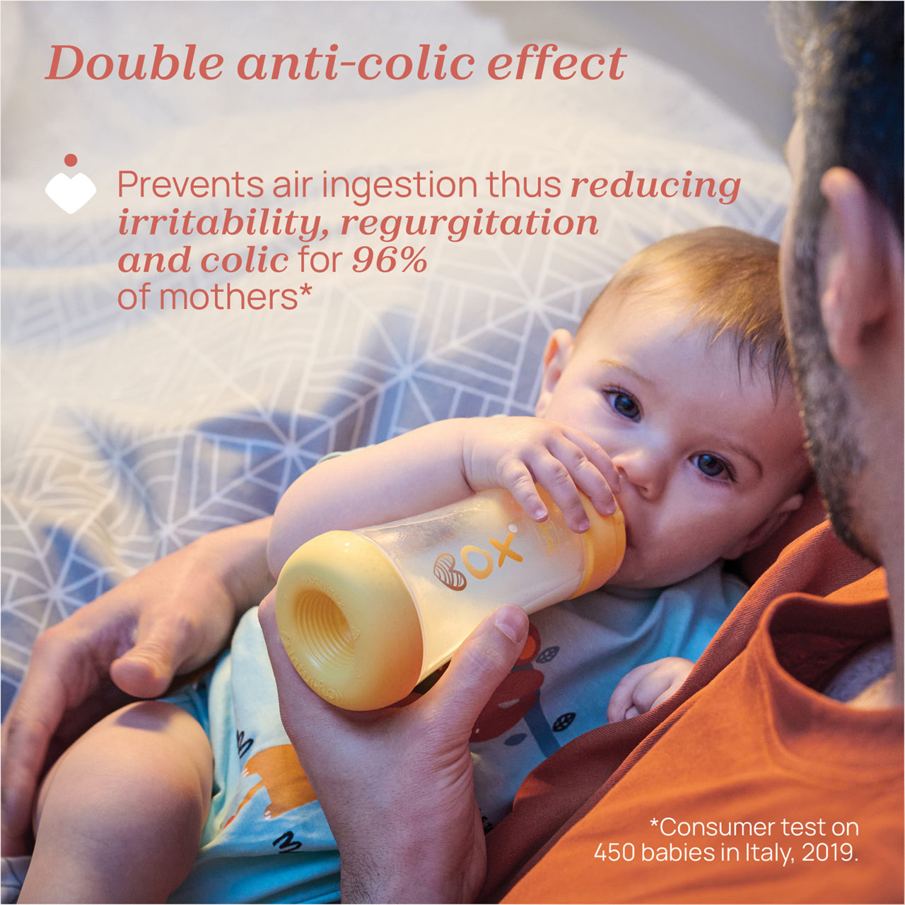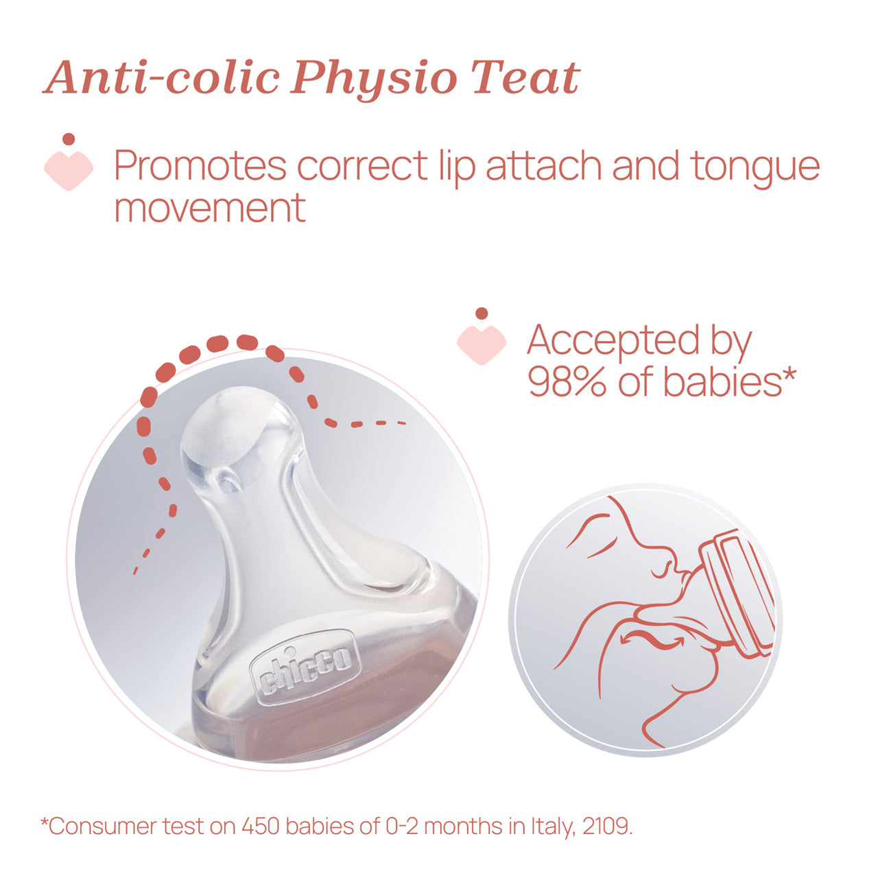 Com fluxo rápido, é ideal para bebés em crescimento, acompanhando o aumento das necessidades alimentares de forma natural. A base desenroscável facilita a limpeza total do biberão, tornando-o prático e higiénico para o uso diário.