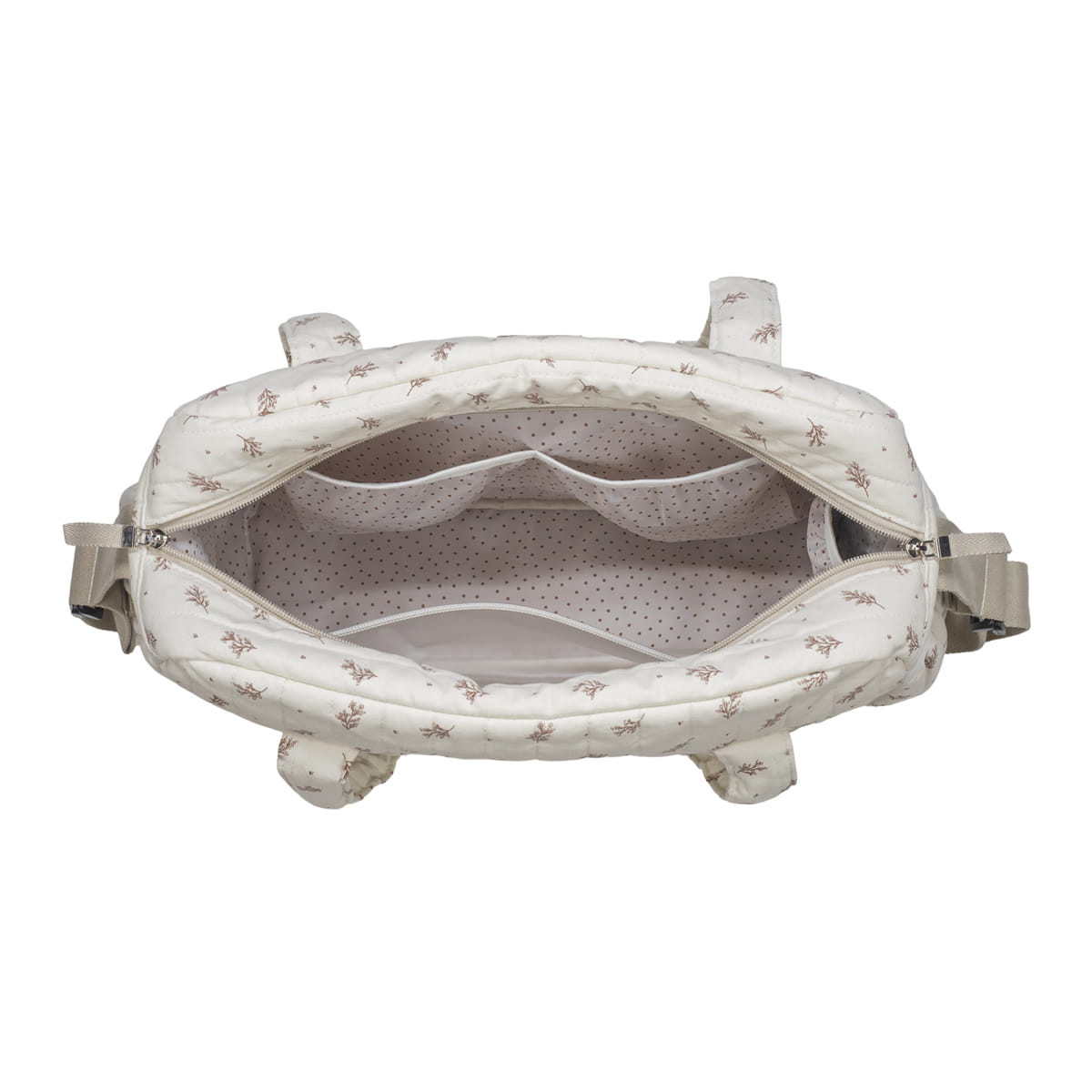 Fraldário Mimosa Rosa com estampa floral para carrinho que inclui trocador de bebê. Saco cesto muito leve, resistente e de grande capacidade para transportar tudo o que é necessário para o passeio do bebé. Possui vários bolsos para manter tudo organizado. Possui dois bolsos laterais externos para garrafas ou garrafas e um bolso frontal com zíper.