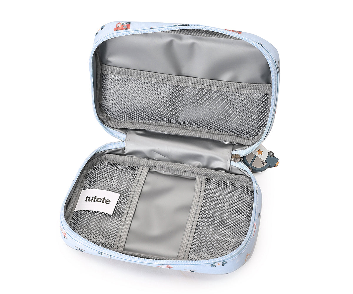 A bolsa sanitária da coleção Back to School da Tutete é a solução prática e funcional para manter os produtos de higiene e cuidados do seu filho sempre organizados e acessíveis. Com um design compacto e moderno, esta bolsa é feita de materiais ecológicos como RPET e PEVA, garantindo durabilidade e resistência.