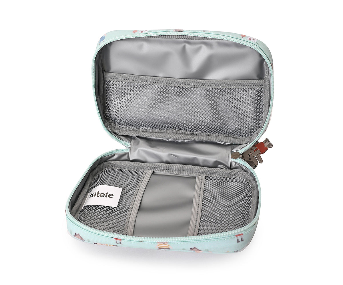 Com um fecho com zíper e uma alça de silicone com personagens das coleções Tutete, esta bolsa inclui 3 bolsos internos de malha para organização adicional. O material interno isolante de alta qualidade proporciona proteção extra para os itens armazenados.