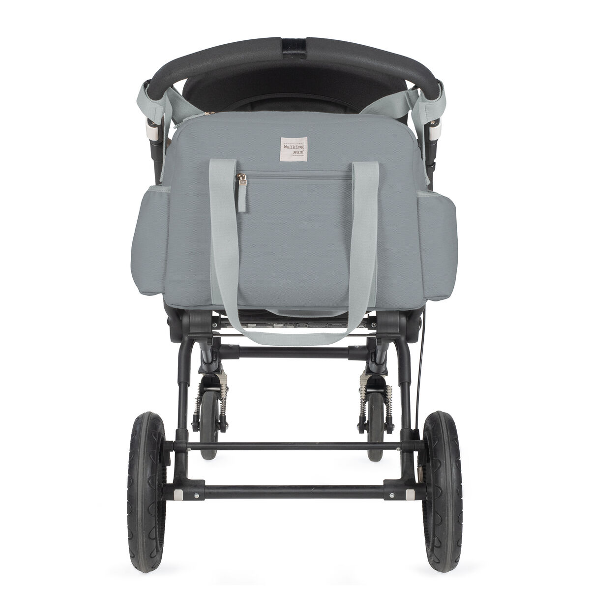 A bolsa tem um sistema de fixação universal, com 2 pegas curtas ajustáveis que facilitam a sua fixação a qualquer modelo de carrinho de bebé. Inclui também uma pega comprida para a poder pendurar ao ombro. Alta qualidade e estilo.