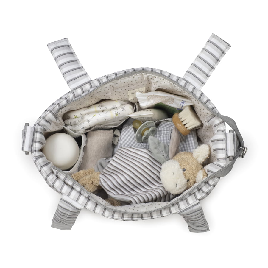 A mala de mão Botton com padrão às riscas da Walking Mum é um modelo muito leve, resistente e espaçoso, ideal para transportar tudo o que precisa nos passeios com o seu bebé.
