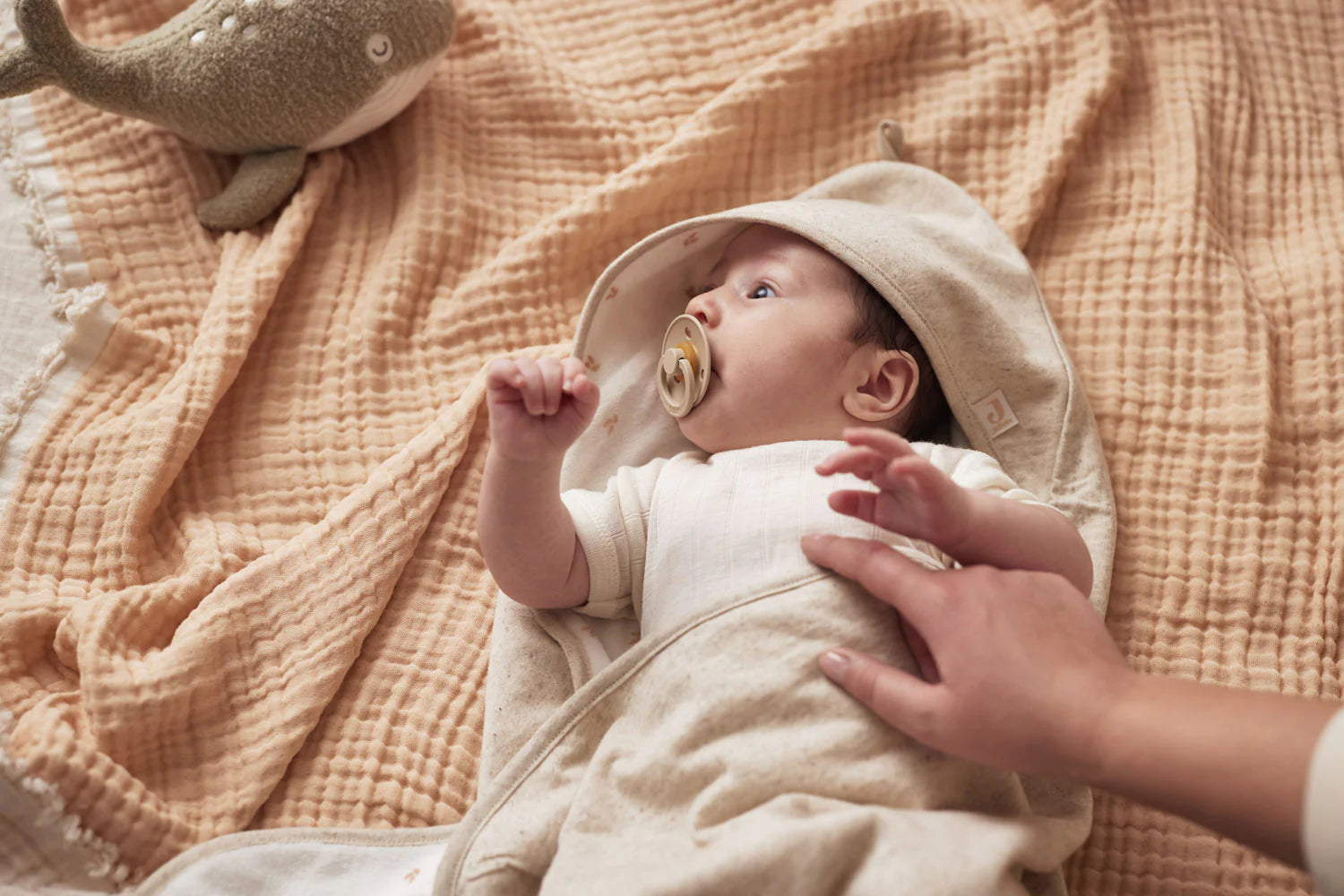 Produzido em tecido bouclé e fleece macio, na cor neutra nougat, transmite calma e aconchego ao toque, tornando-se um companheiro perfeito para brincar e abraçar.