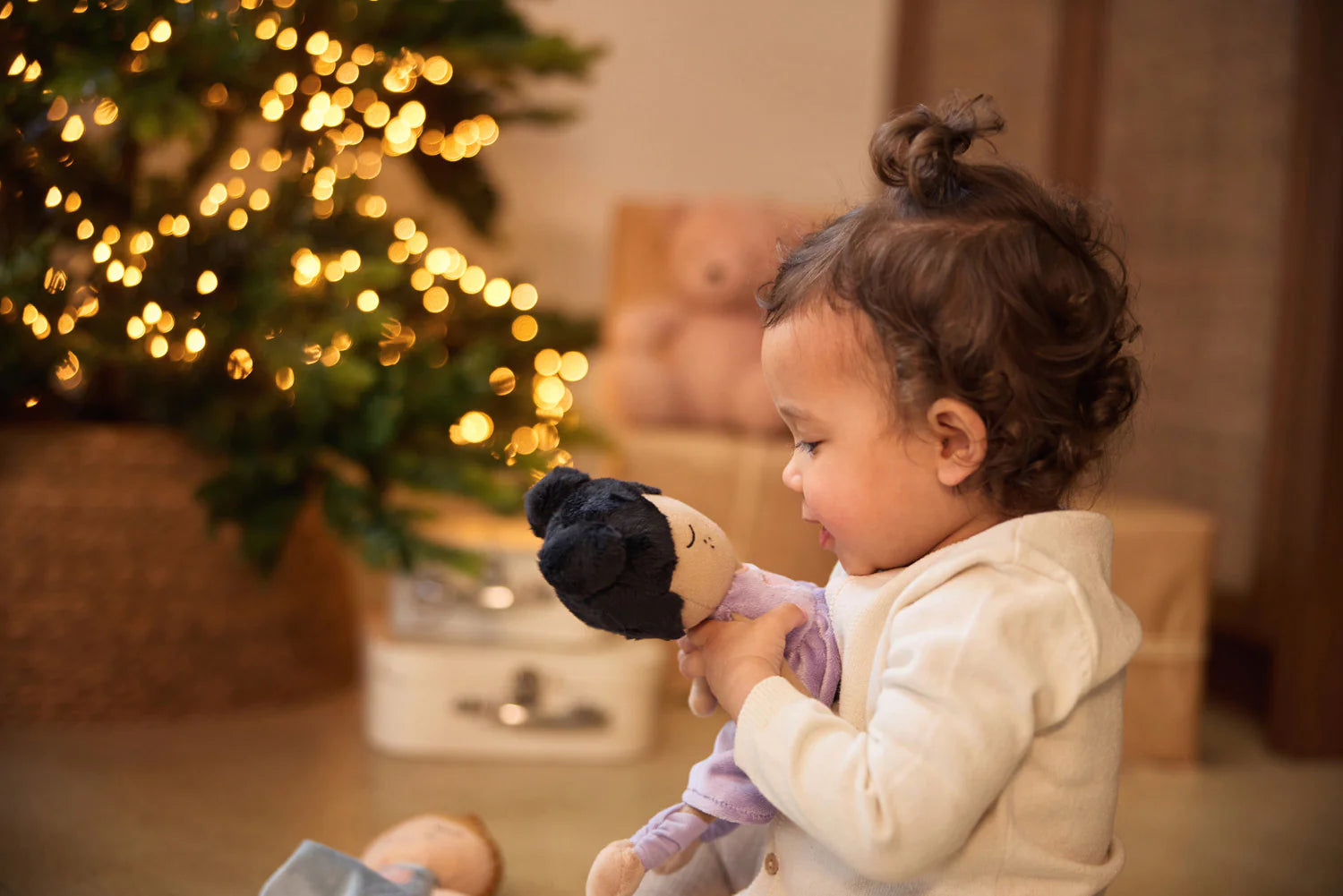 Com o seu vestido lilás com coração bordado e o cabelo apanhado em dois coquinhos, a Daisy transmite ternura e alegria. Ideal para abraçar, brincar ou decorar o quarto, esta boneca foi criada para acompanhar as aventuras e sonhos dos mais pequenos.