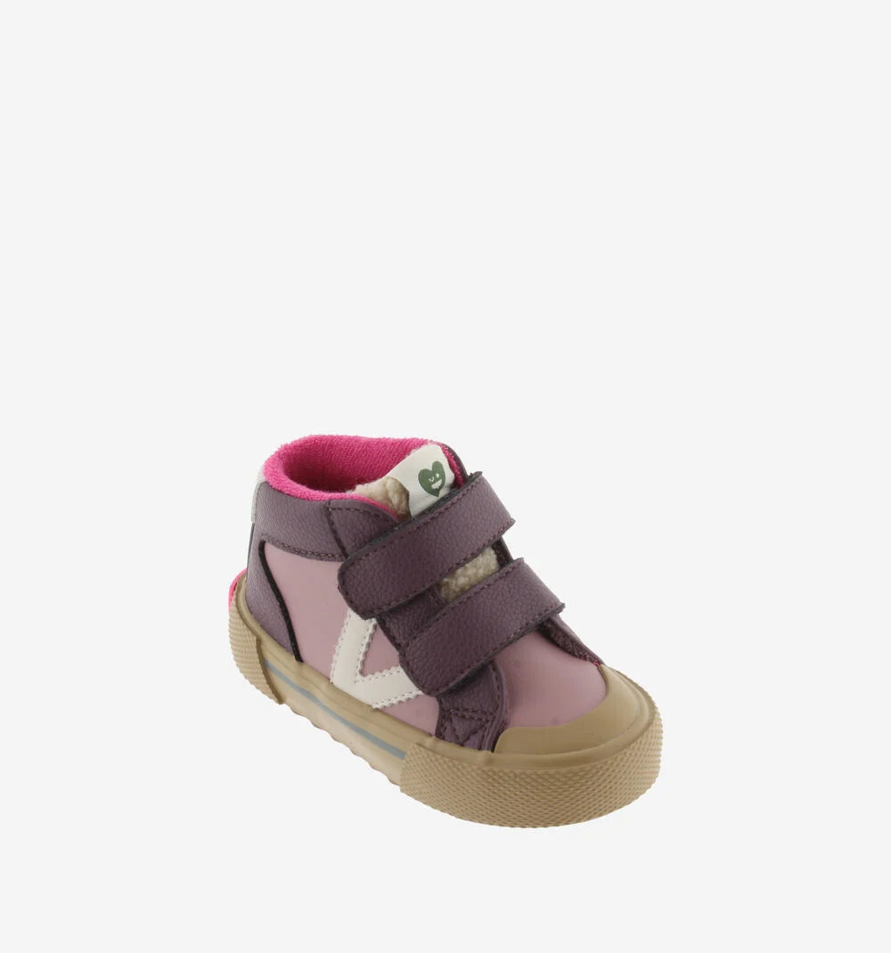 Botins para crianças confeccionados em material com efeito de pele, com forro interior de algodão em cor fluorescente combinando com a etiqueta da Victoria na parte traseira, proporcionando um detalhe único e original. A língua em tecido de carneiro proporciona calor e uma sensação confortável. O fechamento com tiras aderentes garante um ajuste confortável e seguro. Além disso, possuem reforço de borracha na ponta para maior resistência, perfeitos para resistir ao ritmo ativo das crianças. Incluem uma palmilha estampada de alta densidade que garante um conforto excepcional a cada passo.