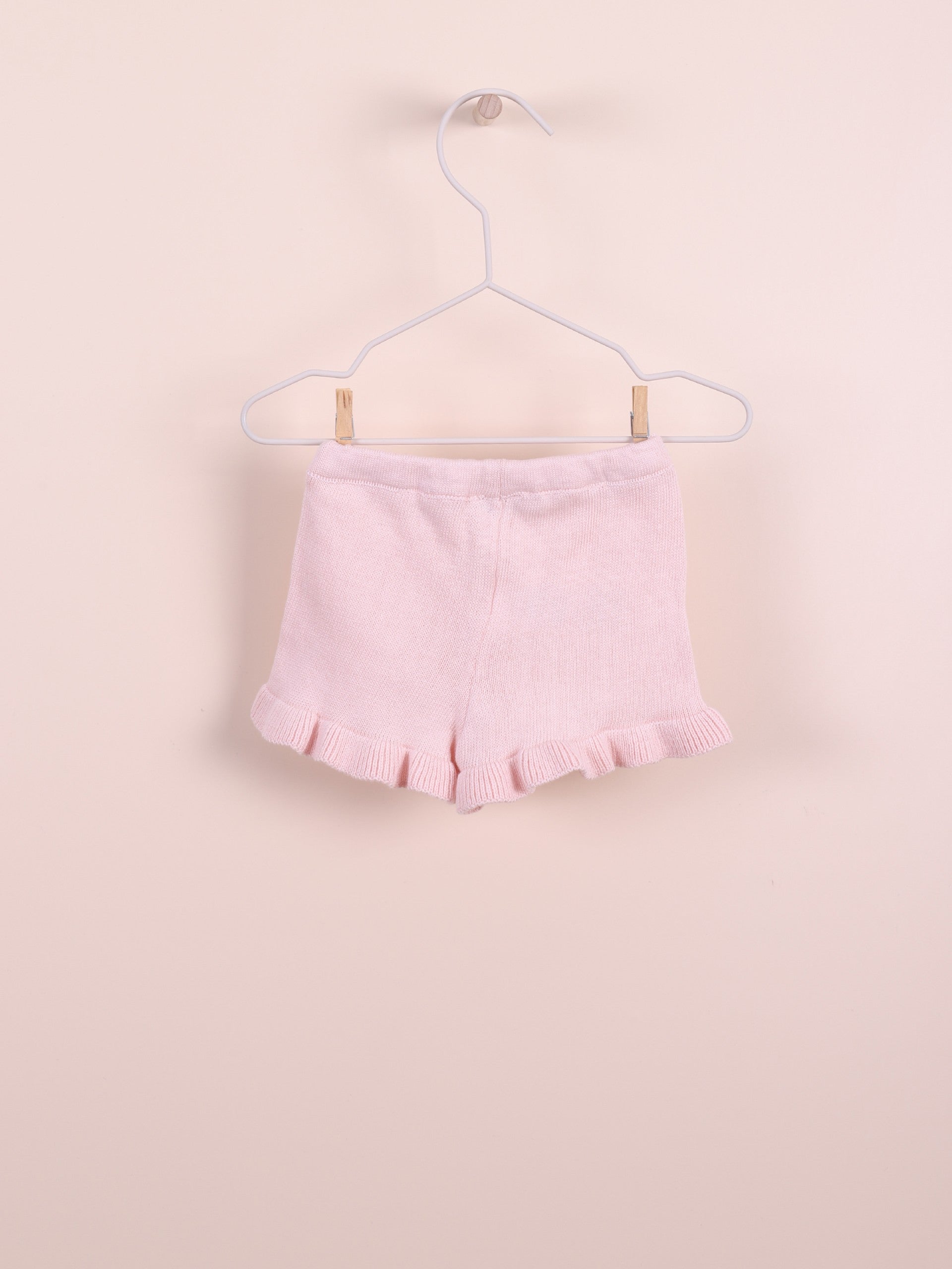 Calções tricotados em malha de algodão orgânico suave. O design com folhos delicados nas pernas confere um toque amoroso e elegante, ideal para bebés meninos e meninas até aos 4 anos. A cinta elástica macia garante um ajuste confortável e prático, perfeito para acompanhar os movimentos dos mais pequenos ao longo do dia.