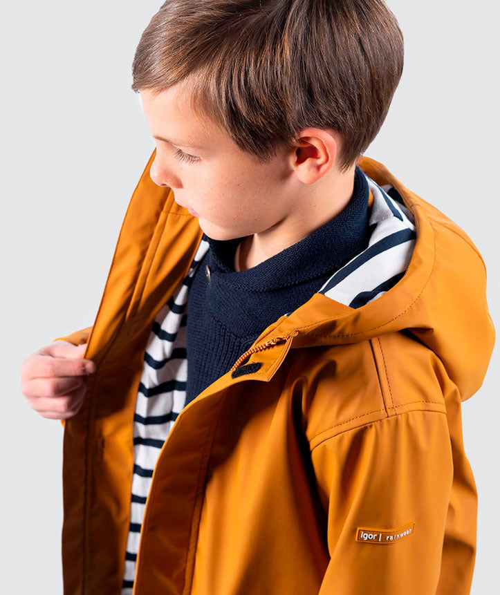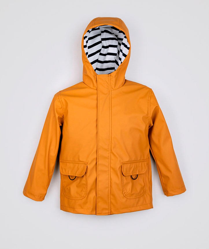 Impermeável clássico, bolsos à frente, aba, forro interior de algodão e às riscas. - Lavar na máquina.