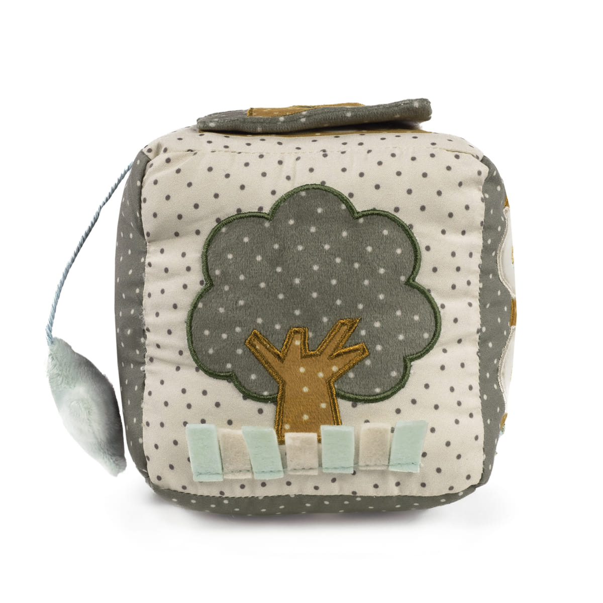 Com um ratinho charmoso e um pedaço de queijo na lateral, esse cubo é repleto de detalhes atraentes e cores suaves que estimulam o olhar do bebê. Inclui diferentes texturas e elementos interativos como corda e aplicações bordadas, ideais para o desenvolvimento sensorial e a coordenação olho-mão. Este cubo de atividades é ideal como primeiro brinquedo do bebé, um excelente presente para chás de bebé, aniversários ou qualquer ocasião especial para os mais pequenos.