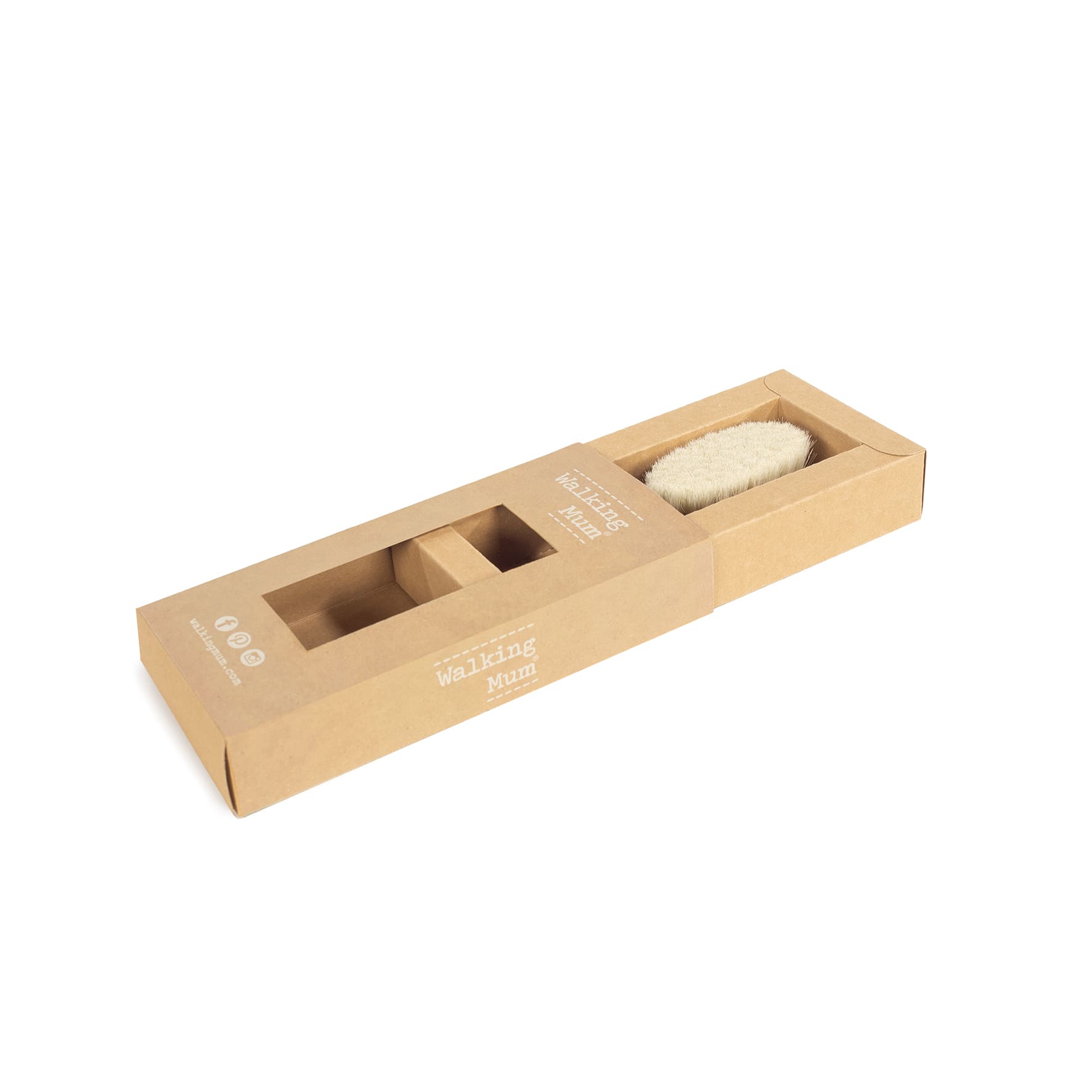 As cerdas naturais de cabra têm a suavidade e flexibilidade ideais para escovar o cabelo do seu bebé.