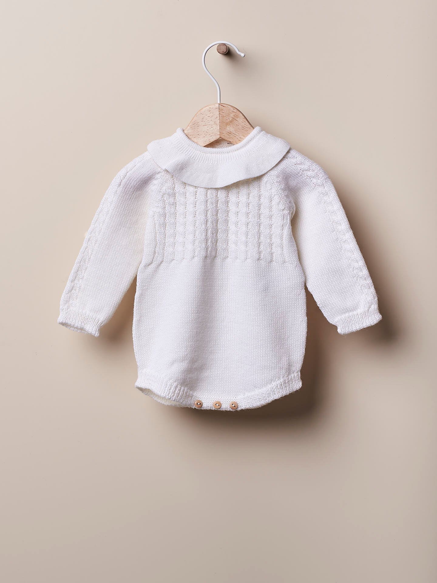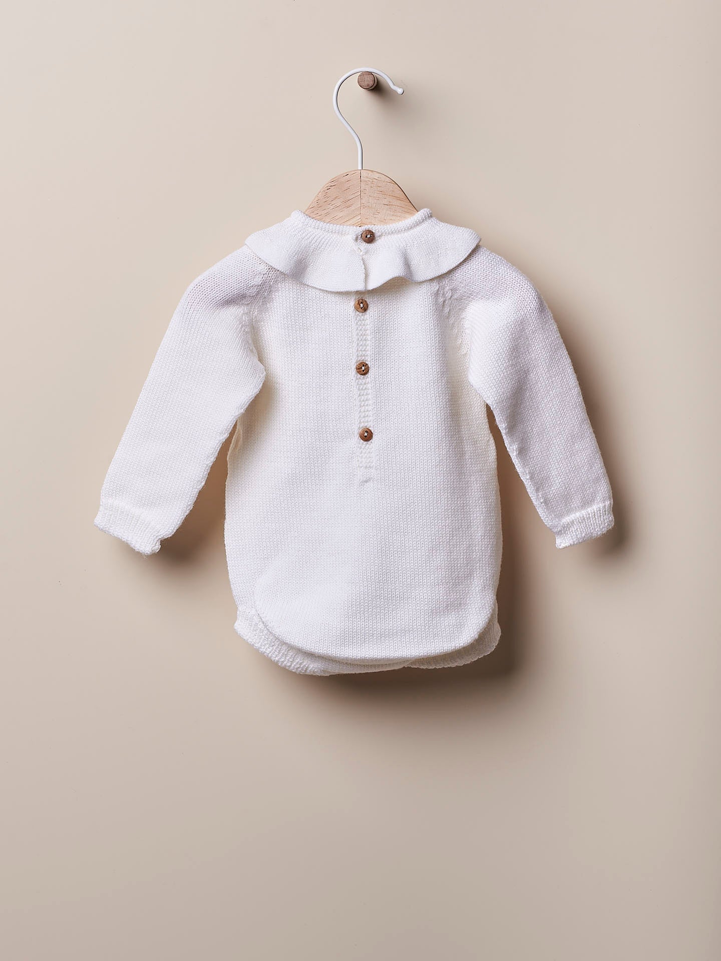 Fofo de manga comprida tricotado em malha suave de lã, ideal para bebés meninos e meninas, até aos 24 meses. O fofo THIS IS WINTER LOVE aperta nas costas e entre as pernas com botões de madeira. Produzida com a tecnologia Wholegarment, esta peça é completa e sem costuras, para maior conforto do seu bebé.