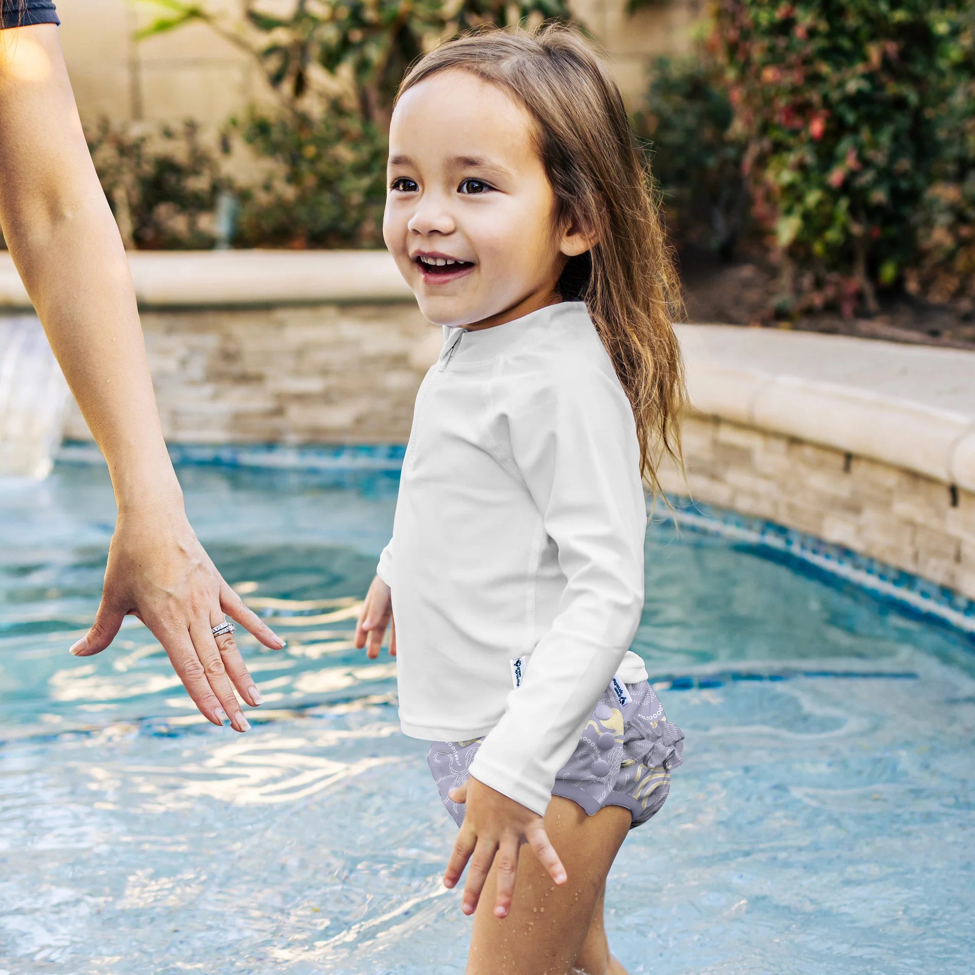 A fralda de natação reutilizável Eco Ruffle Snap combina funcionalidade com um detalhe adorável: folhos na parte de trás! Ideal para desfrutar da água com total liberdade e sem preocupações, oferece proteção contra acidentes, conforto e um visual irresistível.