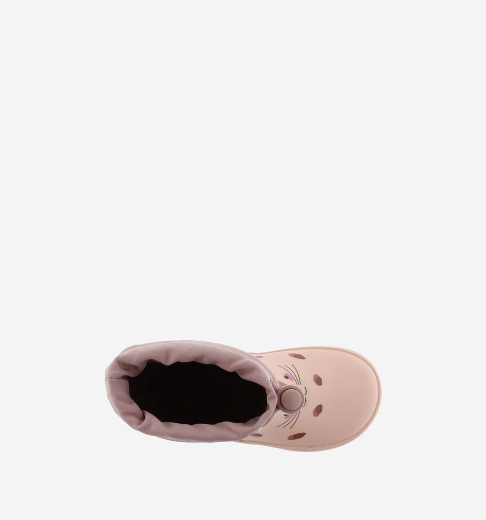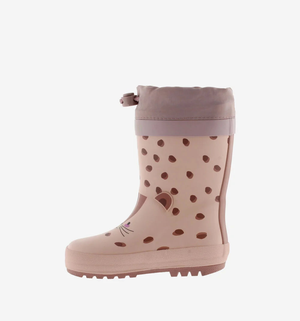 Botas de água para meninas com motivo de animais. Forro interior e fecho com cordão e trava para ajustar e favorecer o calce e a fixação do pé. Gravação de Victoria na sola de borracha e patim antiderrapante para melhor aderência. Confeccionadas em borracha, o que as torna mais respiráveis.