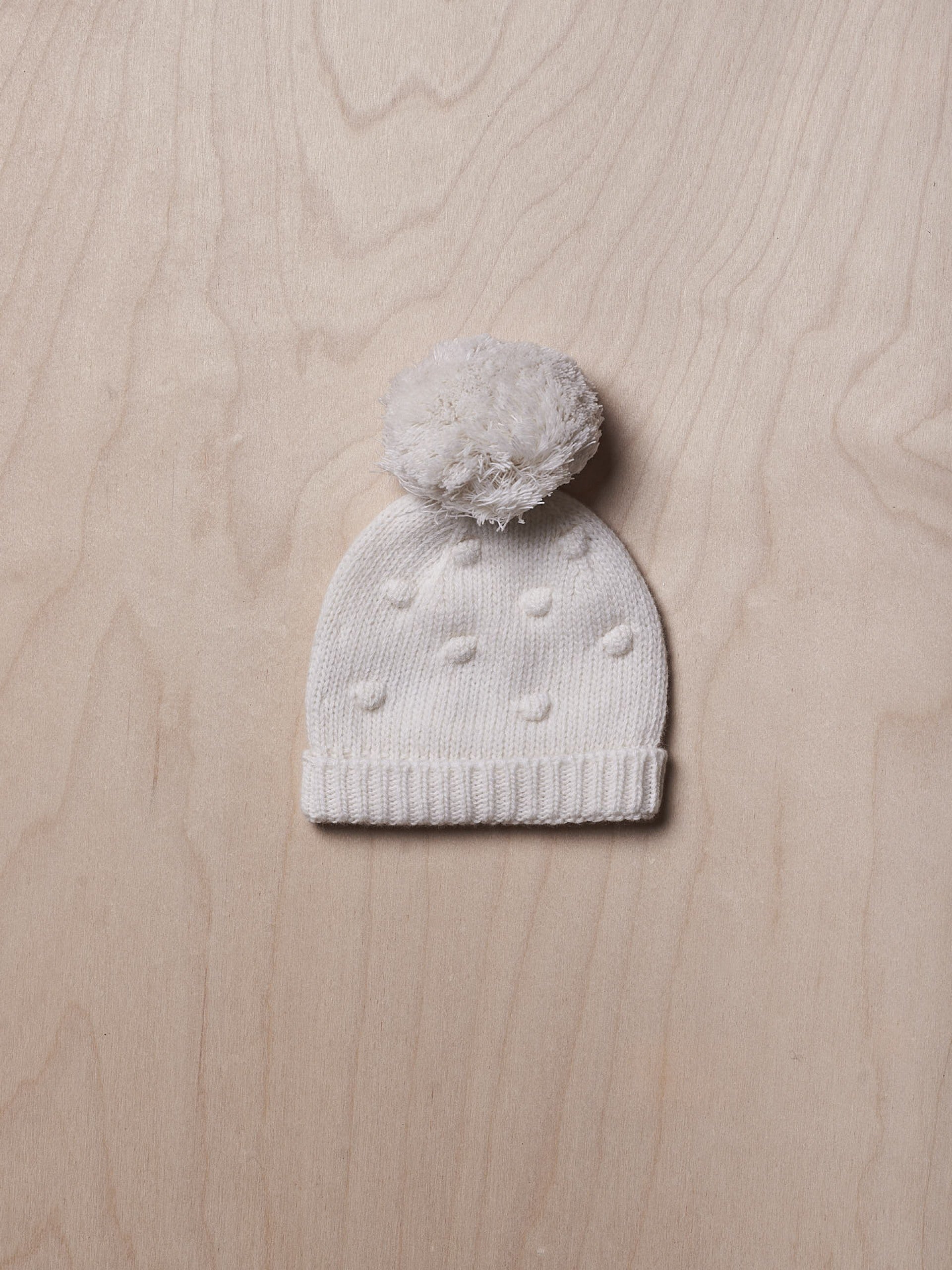 Gorro com pompom tricotado em lã - Pérola