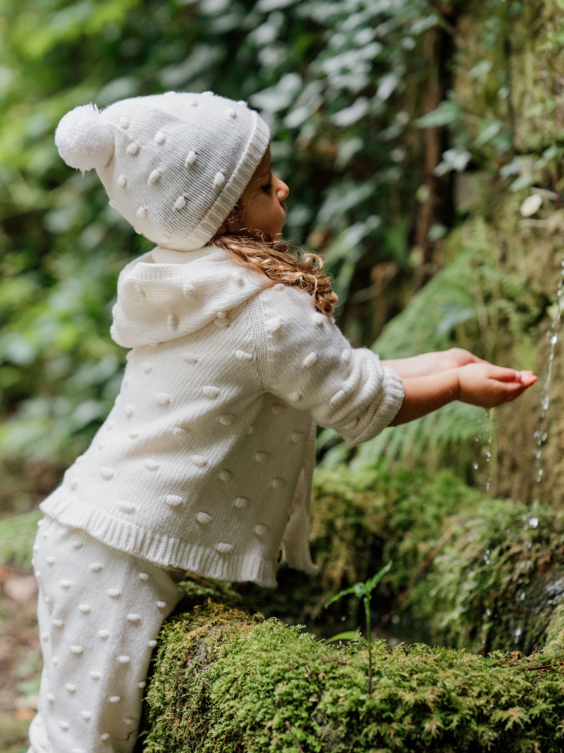 Gorro com pompom LOVE IN WINTER DAYS tricotado em malha suave de lã merino extra fina, ideal para bebés meninos e meninas, até aos 4 anos. Produzida com a tecnologia Wholegarment, esta peça é completa e sem costuras, para maior conforto do seu bebé.