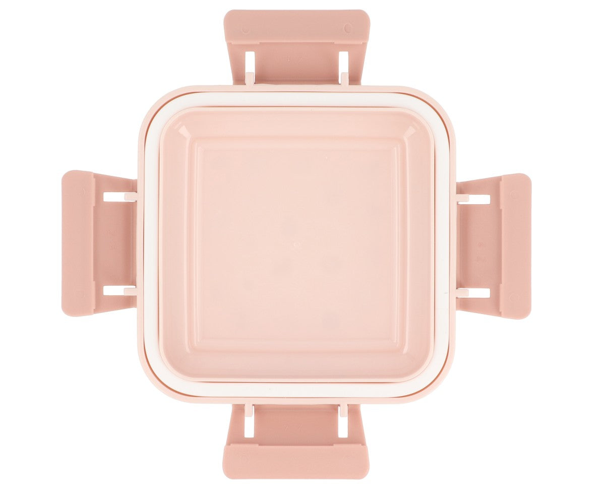 A tampa é equipada com 4 lengüetas de click que garantem que fique hermética, mantendo os alimentos frescos e protegidos. Esta lancheira é livre de BPA, garantindo segurança para os alimentos.