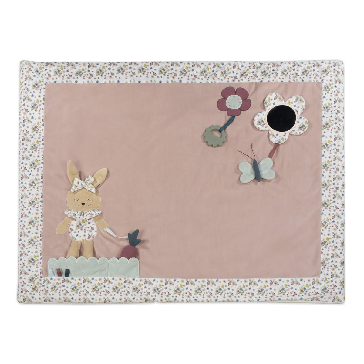 A manta gatinha com atividades com coelhinho na cor rosa é o complemento perfeito para estimular e entreter o seu bebê enquanto ele explora o ambiente. Projetado com detalhes encantadores e recursos interativos. Esta manta proporciona um espaço seguro e divertido para o seu filho desenvolver as suas capacidades motoras e sensoriais.
