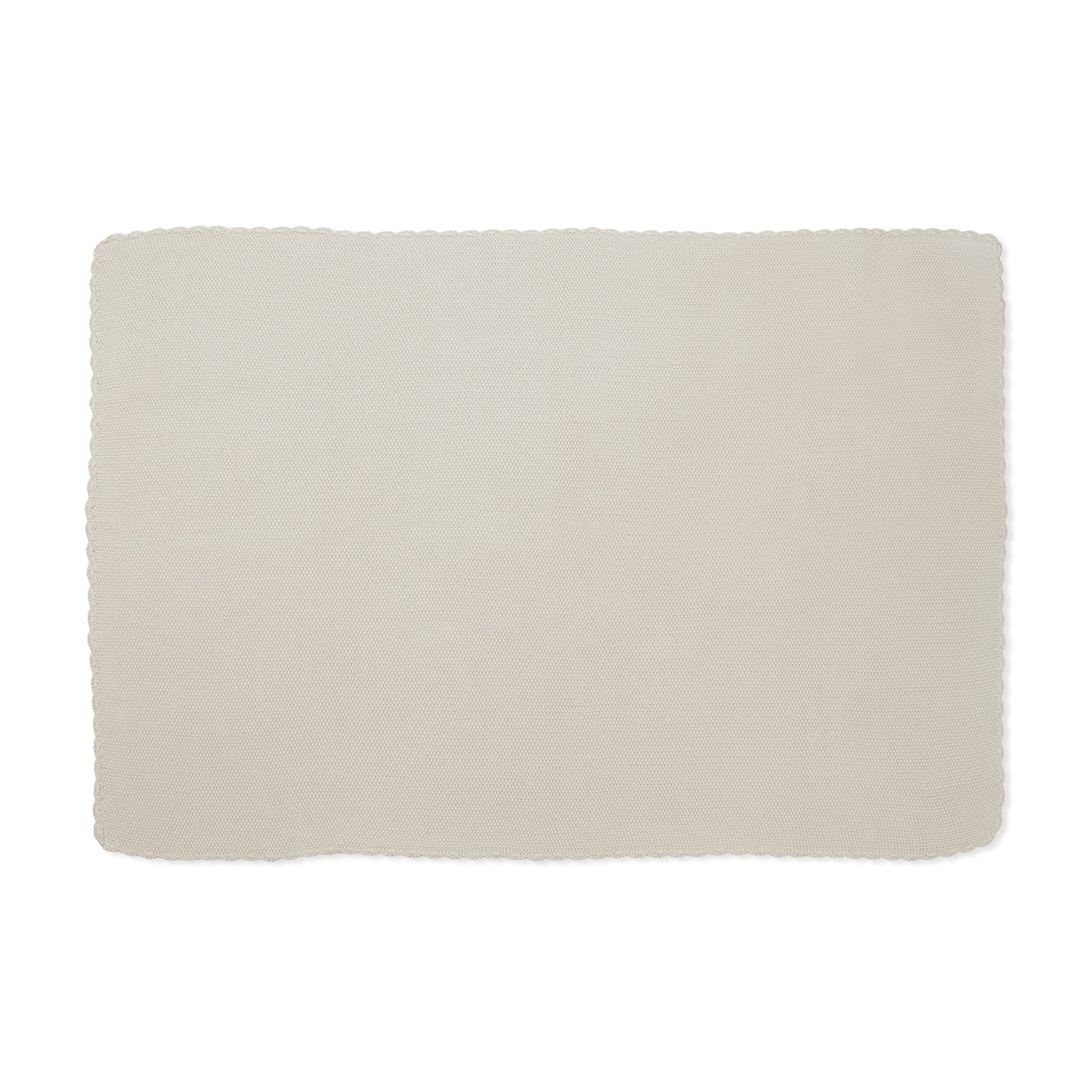Confeccionada em 100% algodão, apresenta delicado ponto de arroz com acabamento em crochet ondulado, unindo aconchego e design intemporal.
