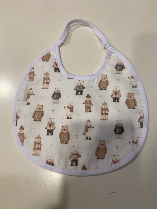 O babete Bear combina proteção e charme nos momentos das refeições. Confeccionado em algodão macio, é delicado para a pele do bebé e apresenta um padrão adorável de ursos vestidos para o inverno. Além do design encantador, possui forro resistente que ajuda a manter a roupa sempre limpa e seca, tornando-o prático e funcional para o dia a dia.
