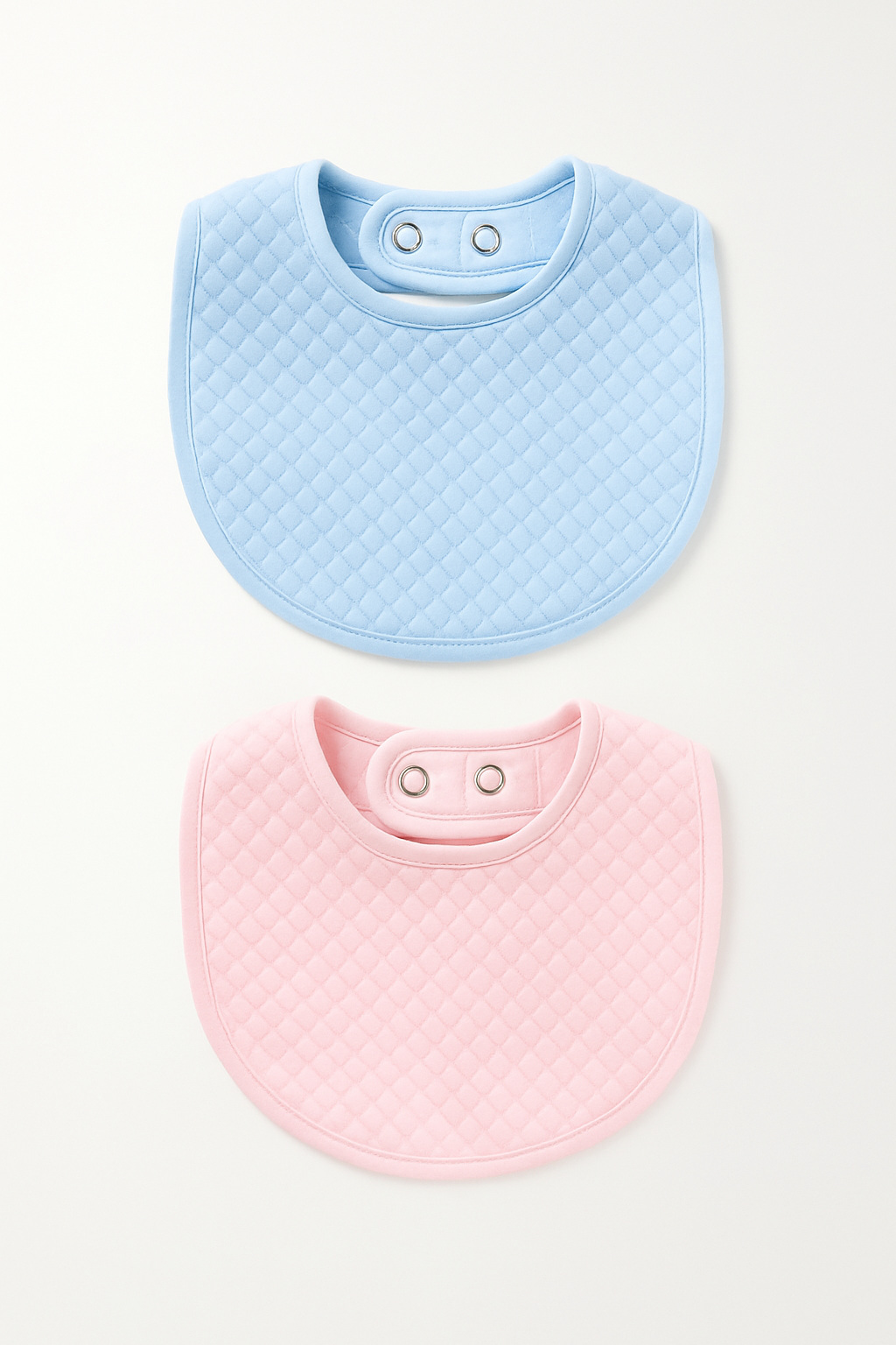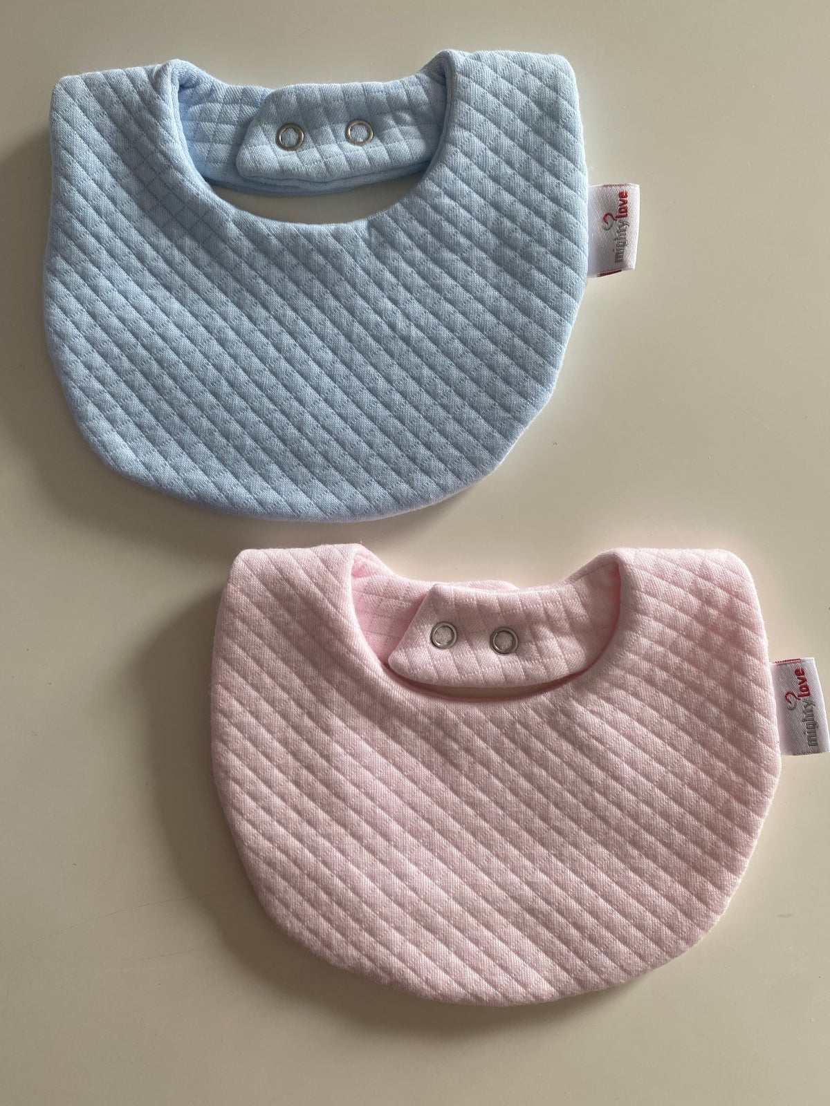 Babete acolchoado da coleção Framboesa, pensado para proteger a roupa do bebé com suavidade e conforto.