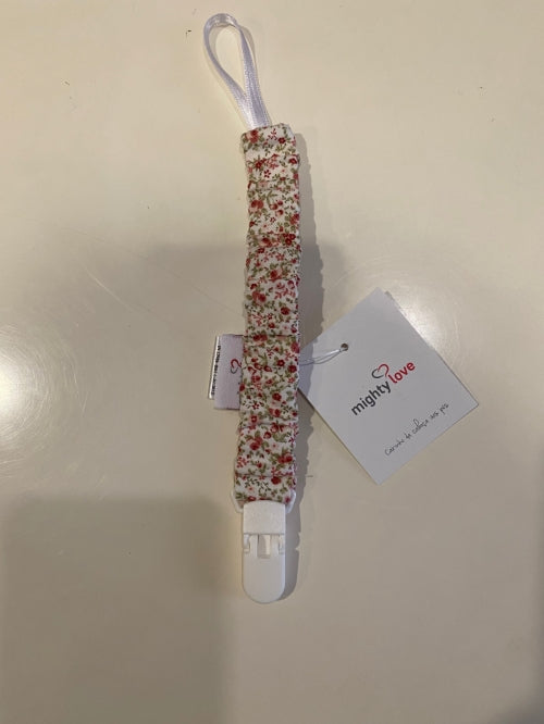 O suporte de chupeta Íris é um acessório prático e encantador, feito em tecido 100% algodão com padrão floral delicado.