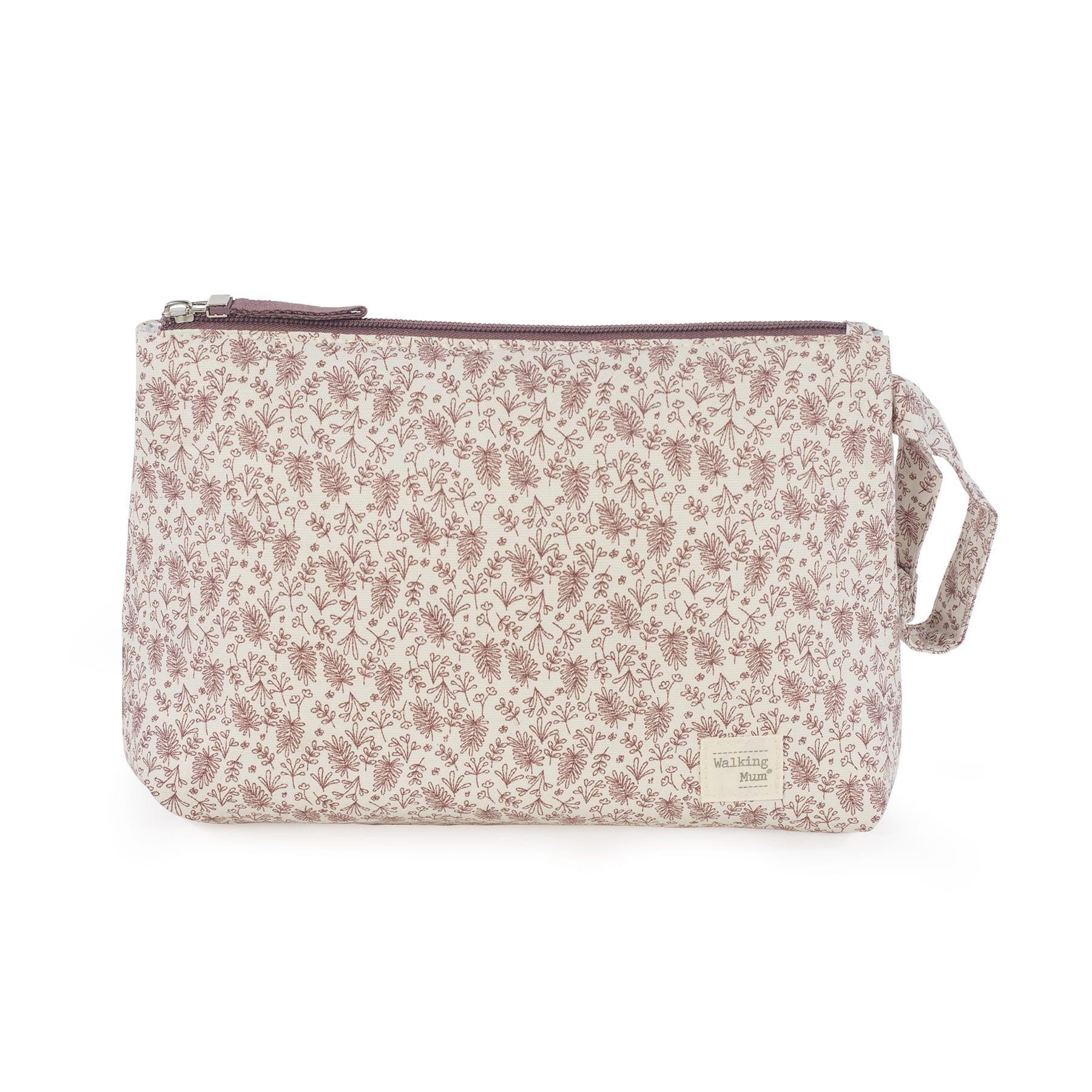 Com um delicado padrão floral e formato retangular prático e compacto, este necesser foi pensado para facilitar a vida dos pais, permitindo transportar de forma segura todos os pequenos artigos de higiene que habitualmente se perdem dentro da mala de maternidade.