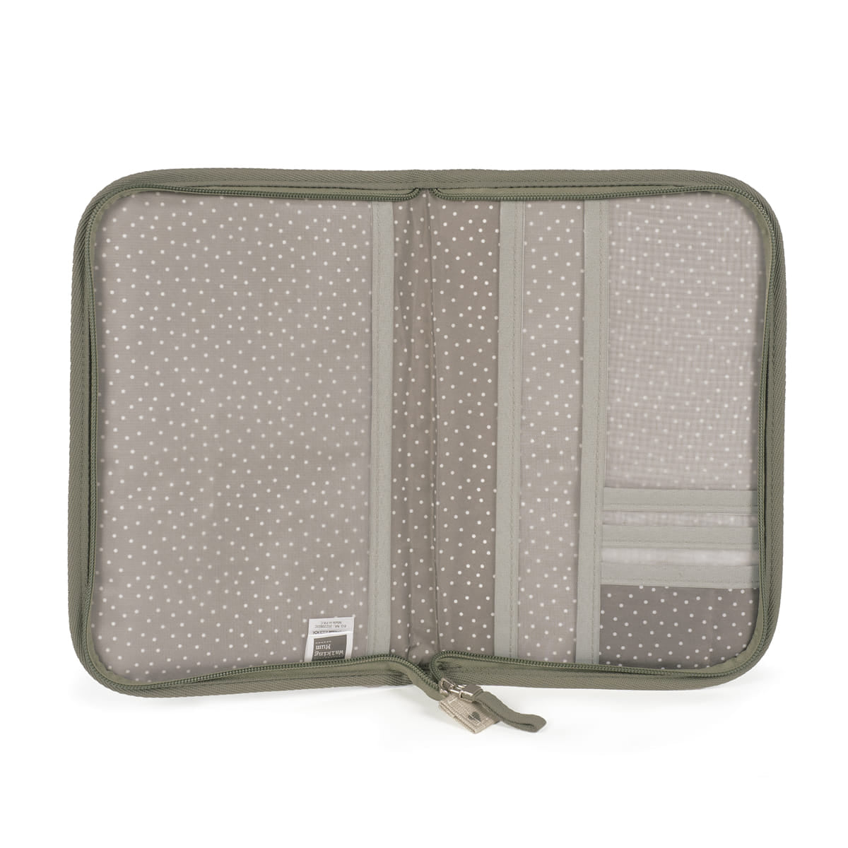 O livro de nascimento de bebé Poppy Moss com corações é uma pasta funcional porta-documentos projetada para combinar com a bolsa de maternidade. Um acessório indispensável para levar consigo para todo o lado que o ajudará a manter organizada toda a documentação e papéis médicos do seu bebé (vacinas, receitas, certidão de nascimento). Este porta-documentos é confeccionado em tecido resistente e possui vários bolsos em ambos os lados para melhor organizar tudo. Possui também um prático fecho de correr para guardar com segurança o livro de nascimento e todos os documentos do seu bebé.