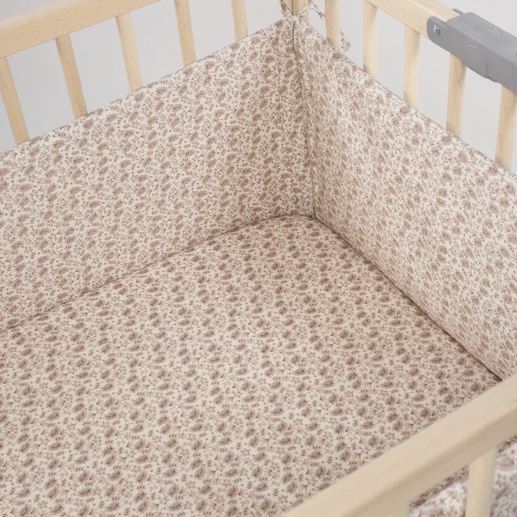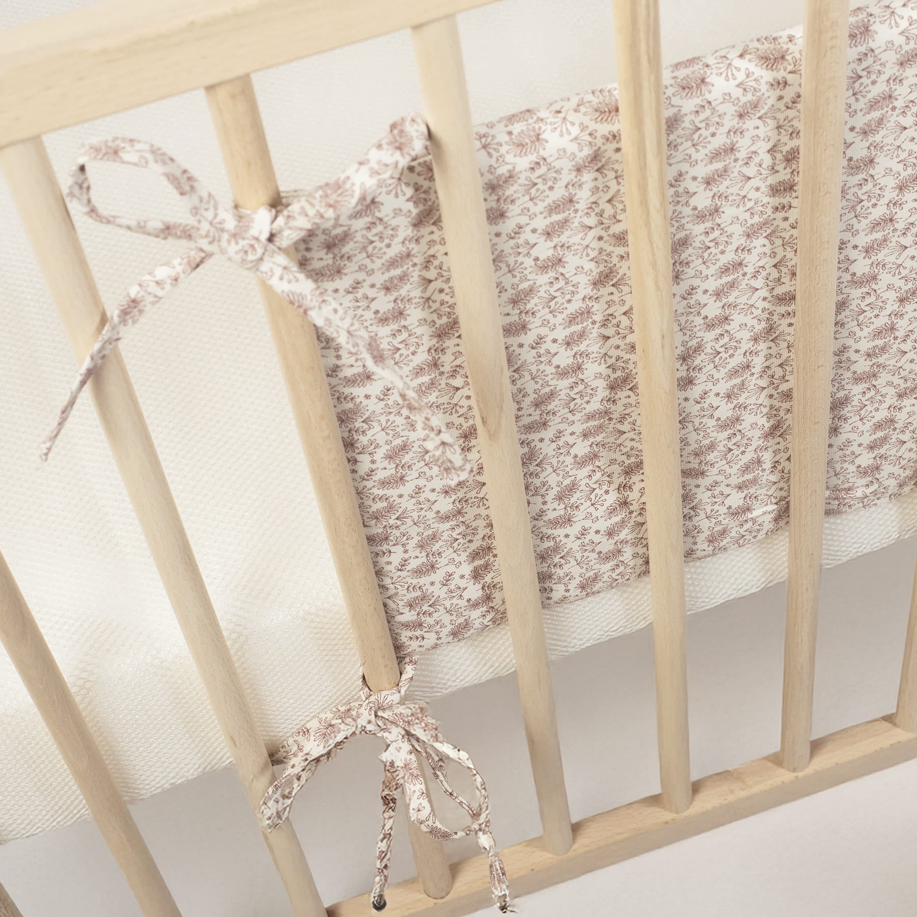 O acolchoamento suave protege o bebé dos barrotes do berço, enquanto os laços laterais asseguram uma fixação firme e estável.
