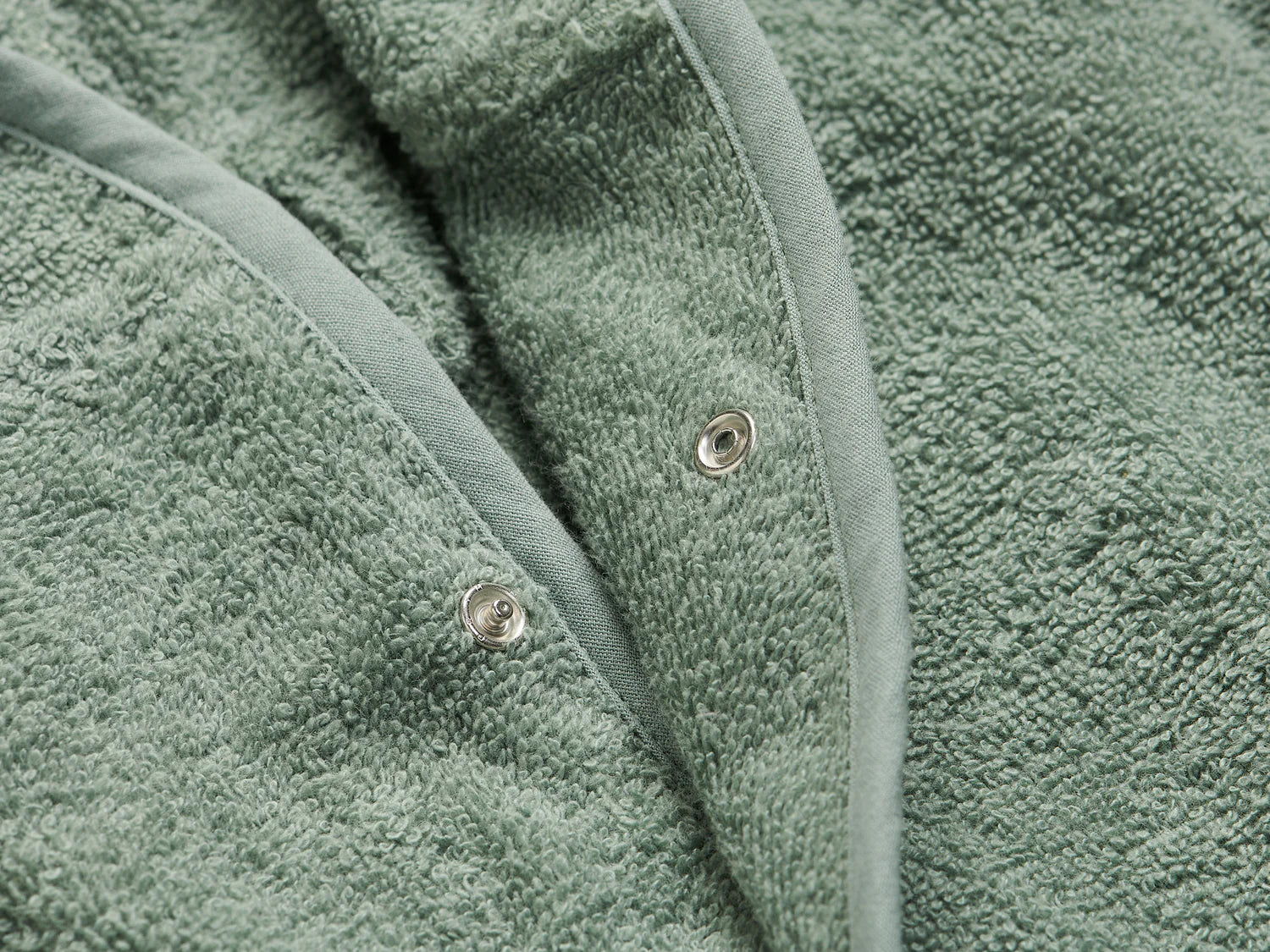 Um roupão em tecido felpo (terry), prático e indispensável para o dia a dia do seu bebé ou criança.