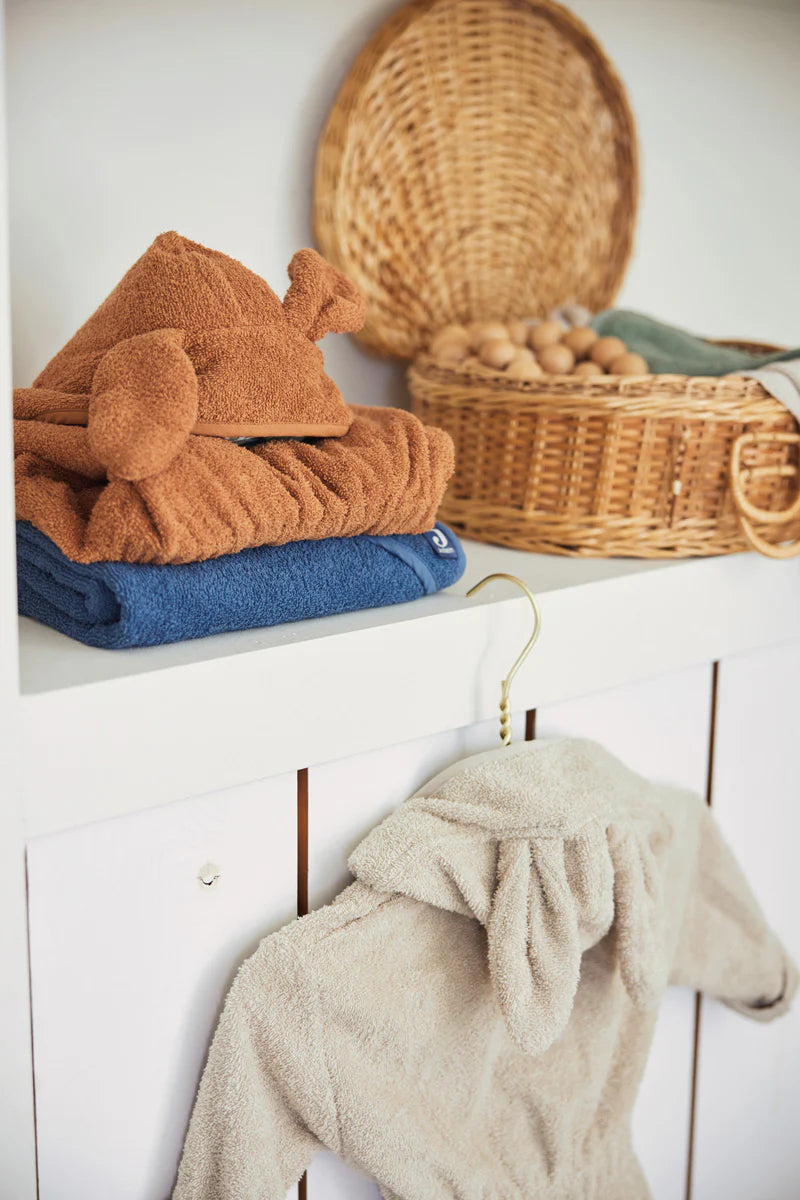 Um roupão em tecido felpo (terry), prático e indispensável para o dia a dia do seu bebé ou criança.