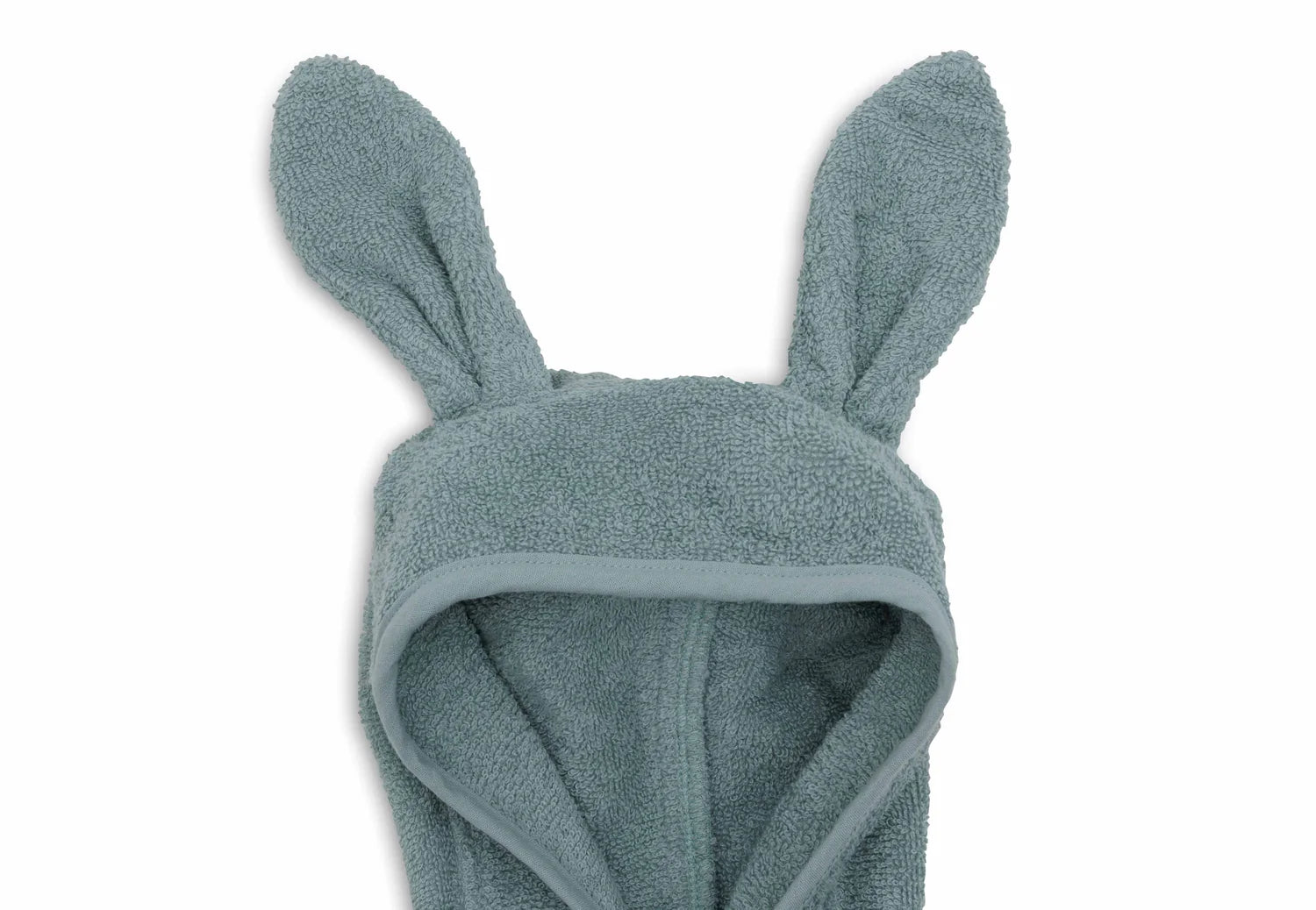 O capuz alegre com orelhas ajuda a secar o cabelo, enquanto o fecho com mola de pressão e o elástico nas costas garantem um ajuste confortável. A fita de atar está presa ao roupão, evitando que se perca.