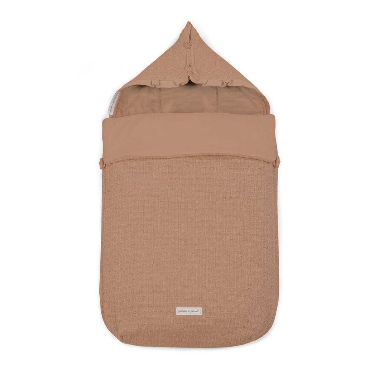 O saco de dormir Icon Caramel é feito de tecido de leno e musselina muito macia. É um acessório 3 em 1 versátil que pode ser usado em casa para cobrir o assento do carro do Grupo 0 e também funciona bem como uma capa de berço. A parte de trás possui material antissuor que evita a transpiração excessiva do bebé e protege o assento, tornando o passeio mais confortável. Possui enchimento de fibra oca removível. É completamente universal porque tem várias aberturas (ilhós) e ajustes necessários para se adaptar à maioria dos berços, assentos de carro e carrinhos de bebê. Um acessório muito útil e versátil para o seu bebê. Uma vez que a base é removida, ele se torna um tapete leve para o carrinho. Prepare com muito amor o ninho rosa para sua menina/menino e decore seus sonhos com um toque diferente onde quer que você o coloque. Um cobertor acolchoado e fofo que permite um descanso mais agradável com seu formato aconchegante de ninho. É um design bonito, simples e confortável que cria um ninho para seu bebê, mantendo-o aconchegante e protegido em dias de vento. O saco de dormir se adapta facilmente a qualquer carro para proporcionar o conforto que seu bebê precisa. Acabamentos de alta qualidade. Todas as nossas capas são feitas em conformidade com as mais rigorosas normas europeias, com materiais de alta qualidade, livres de corantes azoicos, ftalatos e substâncias nocivas à saúde. Tecido fácil de limpar, lavável à máquina a 30º. Os produtos para bebês da Pasito a Pasito têm um design muito diferente de todos os outros. Suas coleções são caracterizadas por um trabalho meticuloso, sempre pensado a partir de uma perspectiva prática. Eles usam materiais de primeira qualidade para enfatizar a elegância e a harmonia em cada uma de suas peças. Nossos modelos são exclusivos e têm um estilo inconfundível, pensados ??para mães modernas que têm bom gosto e apreciam os detalhes tanto quanto nós. Especificações: Materiais: 100% algodão. Cor: Csmel. Tamanho universal.