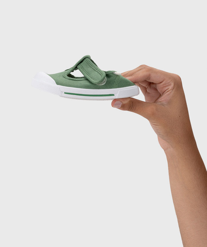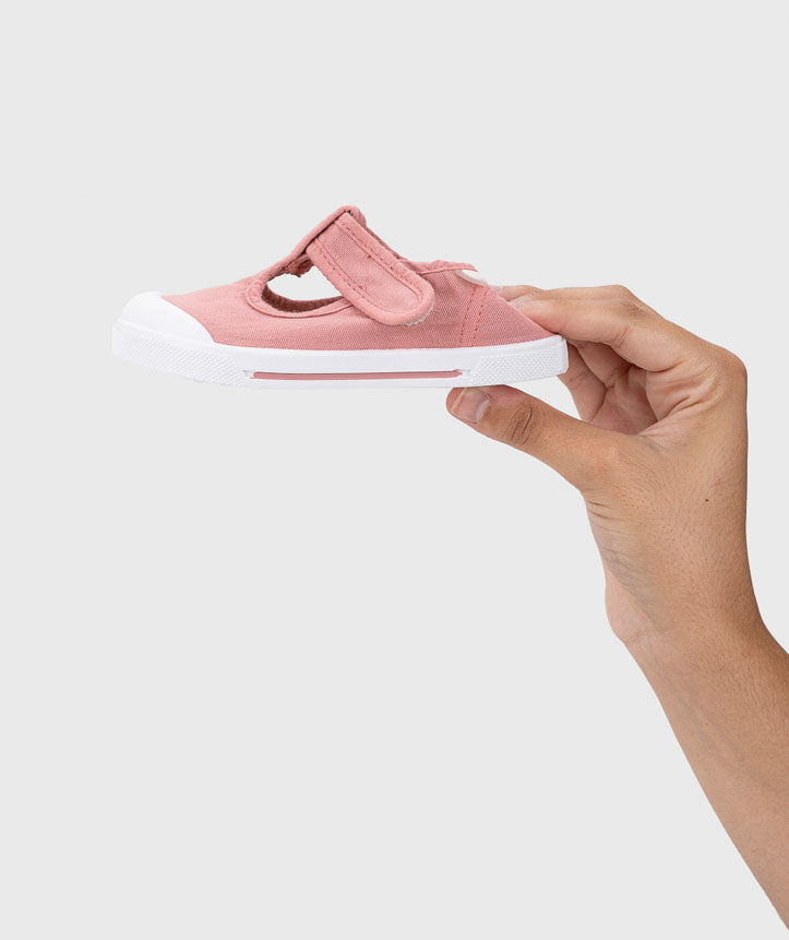 Descubra a Lona T-Bar Barefoot, um modelo pensado para garantir o conforto natural dos pezinhos em crescimento. Fabricada em 100% algodão, esta lona foi desenhada no conceito barefoot wide, proporcionando um ajuste amplo, sem compressão, permitindo um desenvolvimento saudável dos pés.