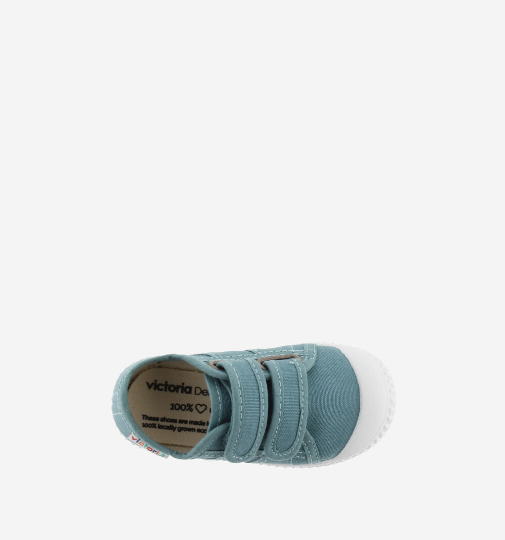 Sapatilhas de lona para criança fabricadas em Espanha com algodão ecológico de alta qualidade. Sola de borracha natural vulcanizada que garante durabilidade e flexibilidade. Além disso, o reforço de borracha na biqueira confere uma camada adicional de resistência e fecho de duas tiras aderentes que fomentam a autonomia das crianças ao calçar. Etiqueta com o logo multicor na lateral. Inclui uma palmilha interior para maior conforto. São leves e muito fáceis de lavar.