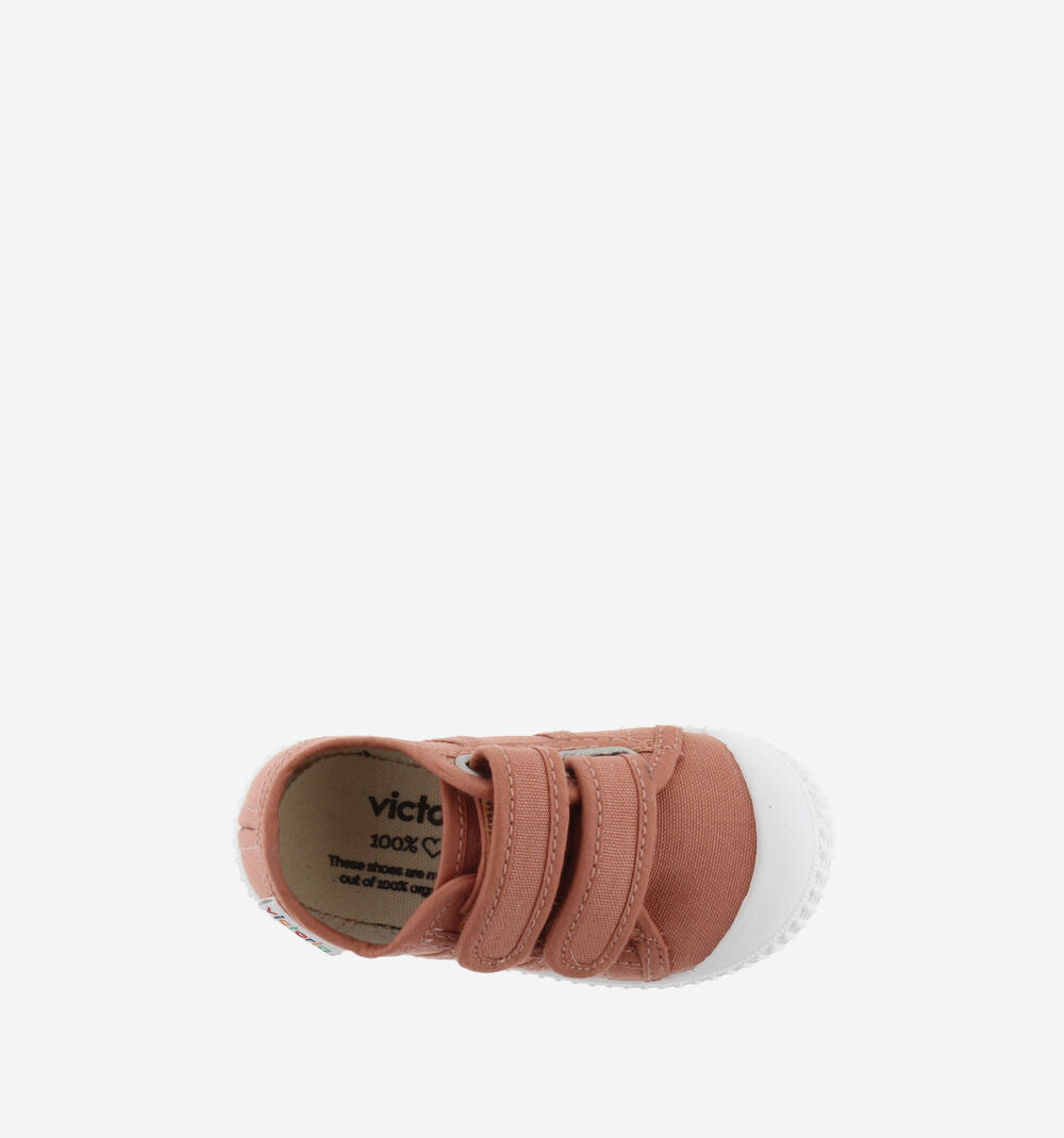 Sapatilhas de lona para criança fabricadas em Espanha com algodão ecológico de alta qualidade. Sola de borracha natural vulcanizada que garante durabilidade e flexibilidade. Além disso, o reforço de borracha na biqueira confere uma camada adicional de resistência e fecho de duas tiras aderentes que fomentam a autonomia das crianças ao calçar. Etiqueta com o logo multicor na lateral. Inclui uma palmilha interior para maior conforto. São leves e muito fáceis de lavar.