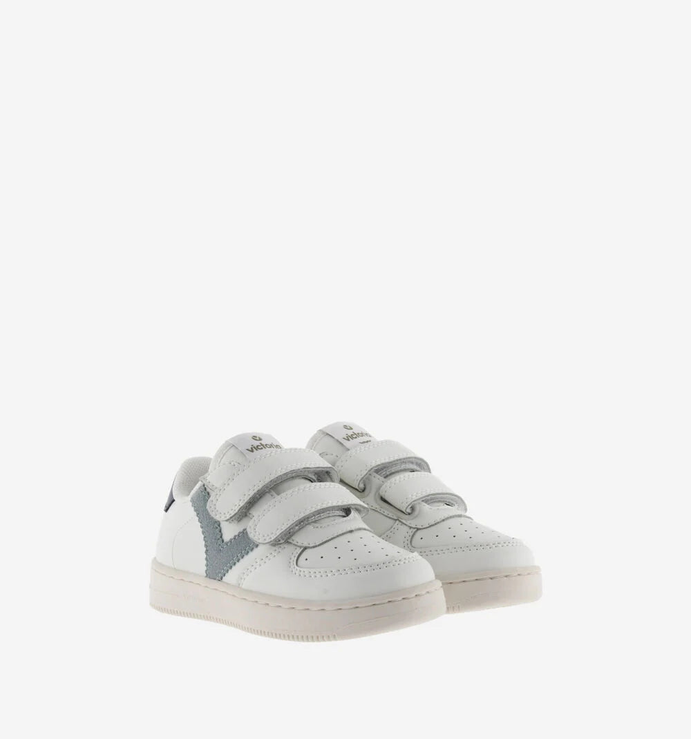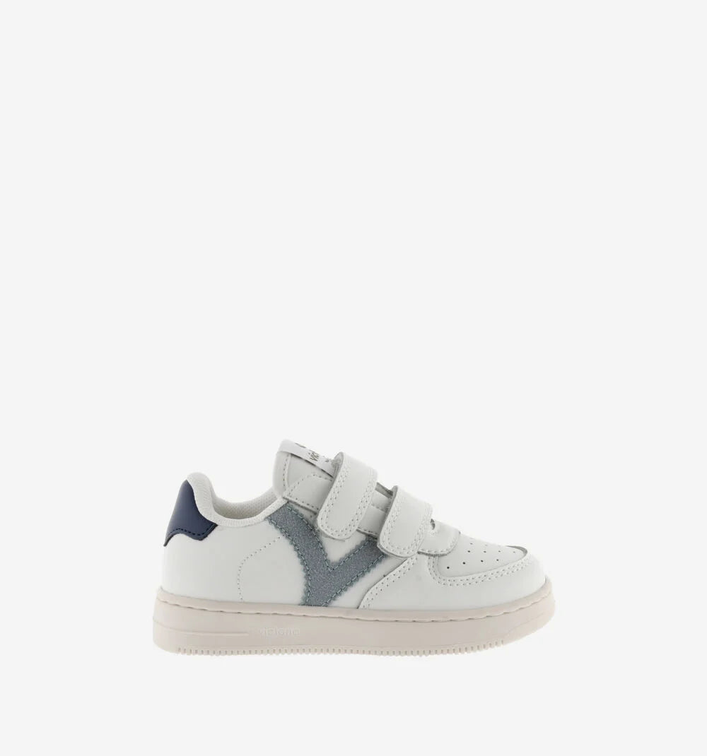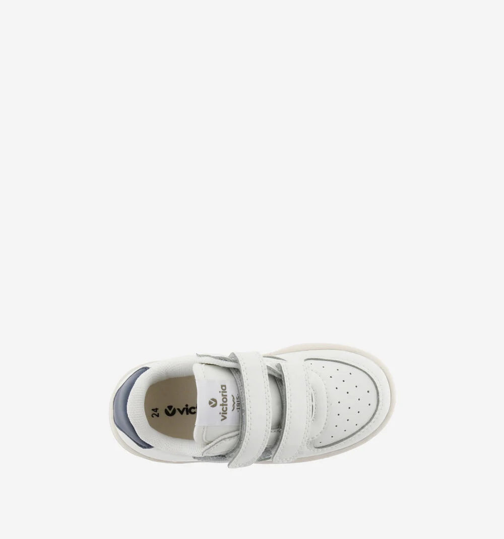 Tênis infantis da Victoria Shoes. Fabricados em material com efeito de couro com peças em camurça. Seu design clássico com logo retrô da Victoria na lateral e detalhe contrastante no calcanhar dão um toque único. Contam com fechamento de duas tiras aderentes, três tiras a partir do tamanho 36, para um ajuste perfeito. Confortáveis, respiráveis e fáceis de colocar.